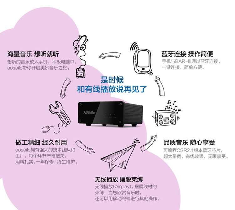 Aosailo Bar-III Bluetooth Audio-приемник Hifi Неразрушающий оптический волокно-коаксиальный усилитель беспроводной
