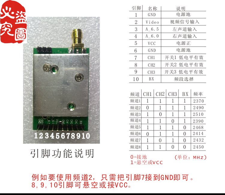 2.4G Ultra -Small Micro -Cchip 1W Беспроводной видеомодуль Микроволновый видеосигнал, переданный в набор передачи передачи передачи