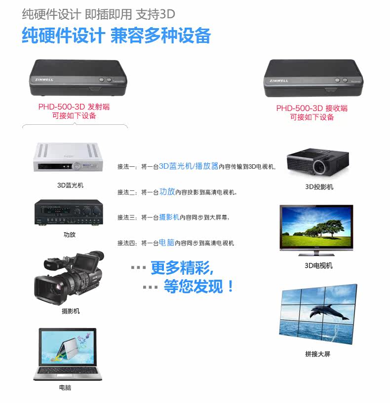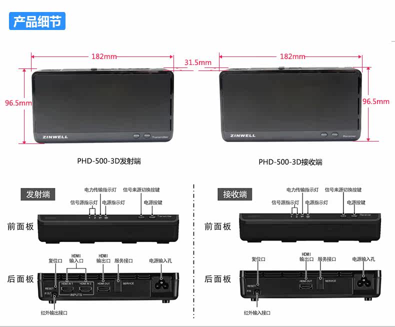 Zinwell PhD-500 Высокопродажа аудиовизуальная передача мощности 1080p беспроводной аудиовизуальный передатчик