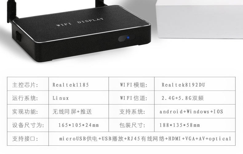 Промышленность -Grade 5g Wi -Fi Smart Screen Ship Push Treasure 1080p HDMI VGA AV Phone Wireless Tyme Device