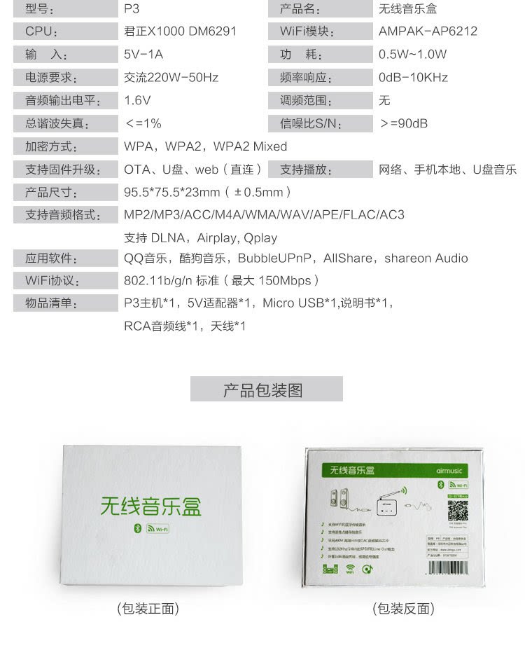 Airmusic/P3 Wireless Wi -Fi Music Box Bluetooth Audio Receiver Hifi не -развернительная передача