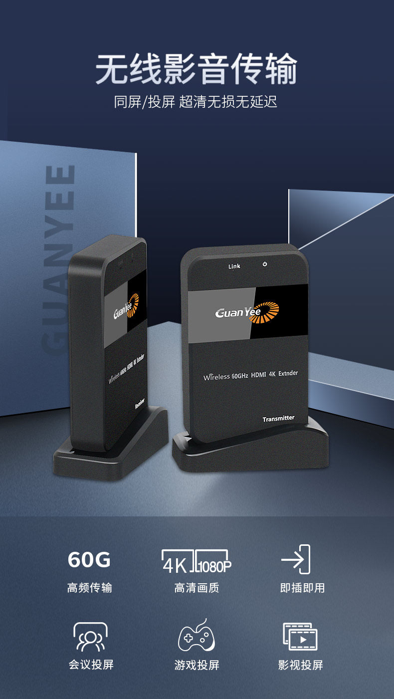 Гуанья 4K беспроводной экраны на экране выключатель компьютера экран мобильный телефон подключение телевизора и экраны Millimeter Wave HDMI Беспроводная трансмиссия