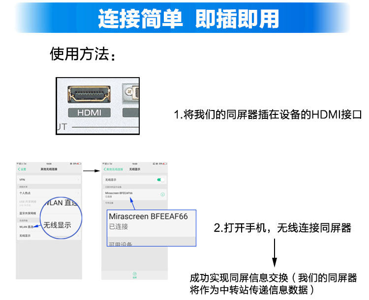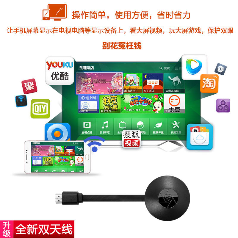 Мобильный телефон подключает телевизионный компьютер, экран сбрасывает экрановой проекцию трансмиссии беспроводной проходы преобразование экрана HDMI HD