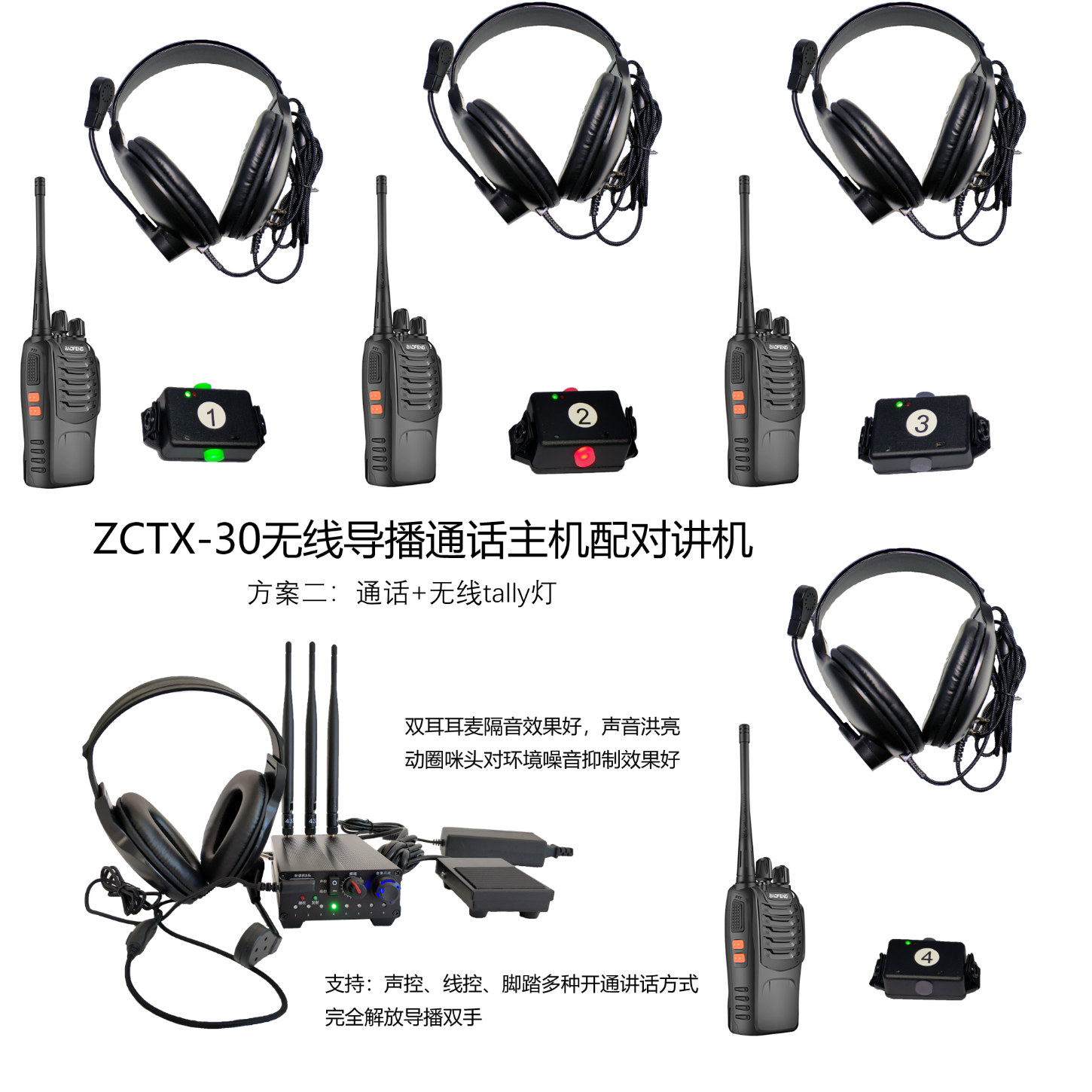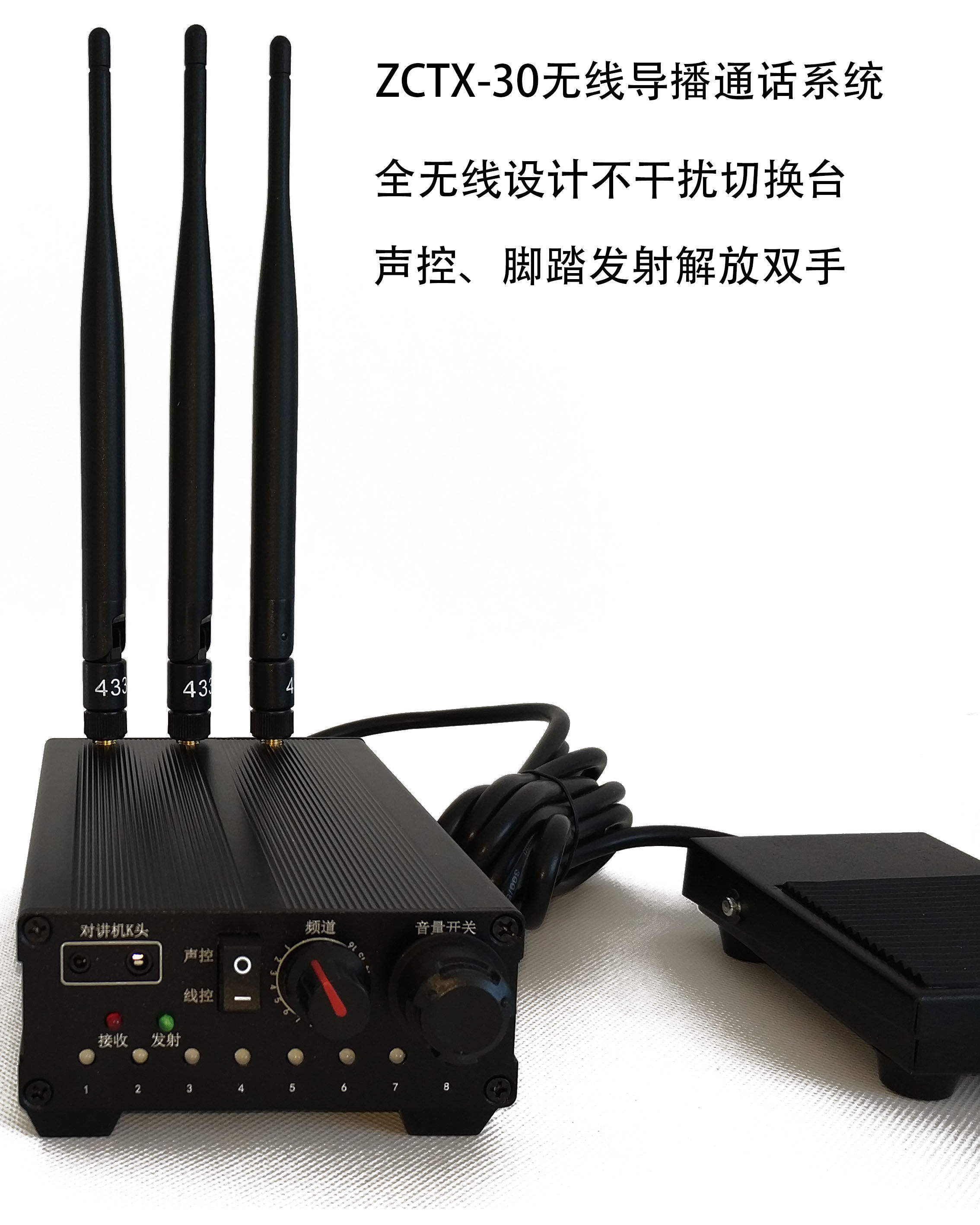 3. Чтобы убедиться, что руководство может исходить из обеих рук, чтобы гибко переключить таблицу переключения, хост беспроводных вызовов оснащен различными способами открытия голосовых вызовов: управление звуком, управление линией и переключатель педали.
