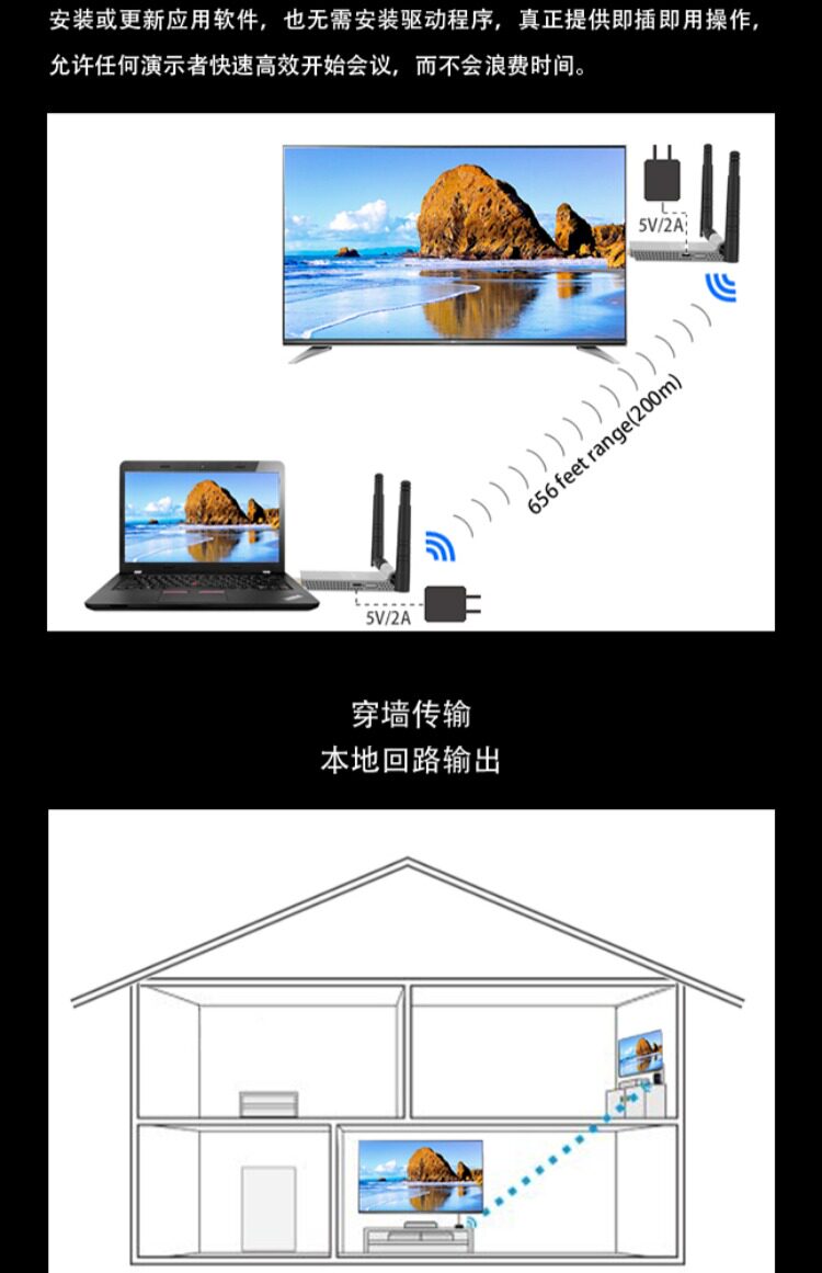 200 метров через беспроводную трансмиссию HDMI HDMI, аудио видео видео с высоким уровнем передатчика и экрана экрана удлинителя