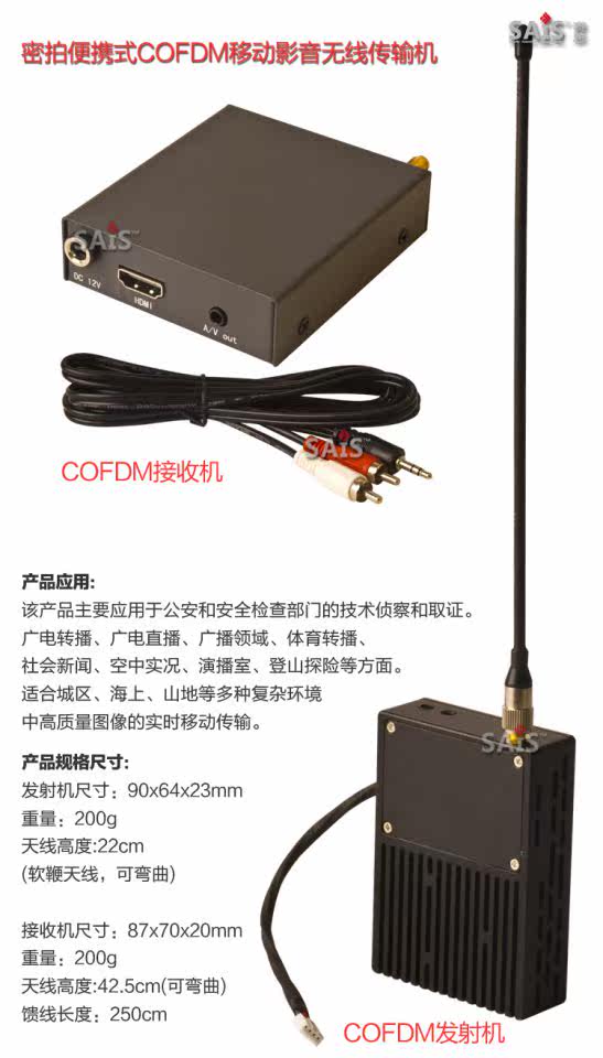 COFDM Беспроводная диаграмма цифровой передатчик донор Drone Drone FPV Aerial Video High -Definition передачи видео