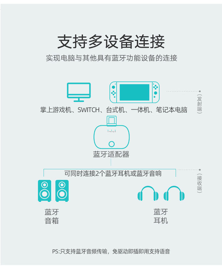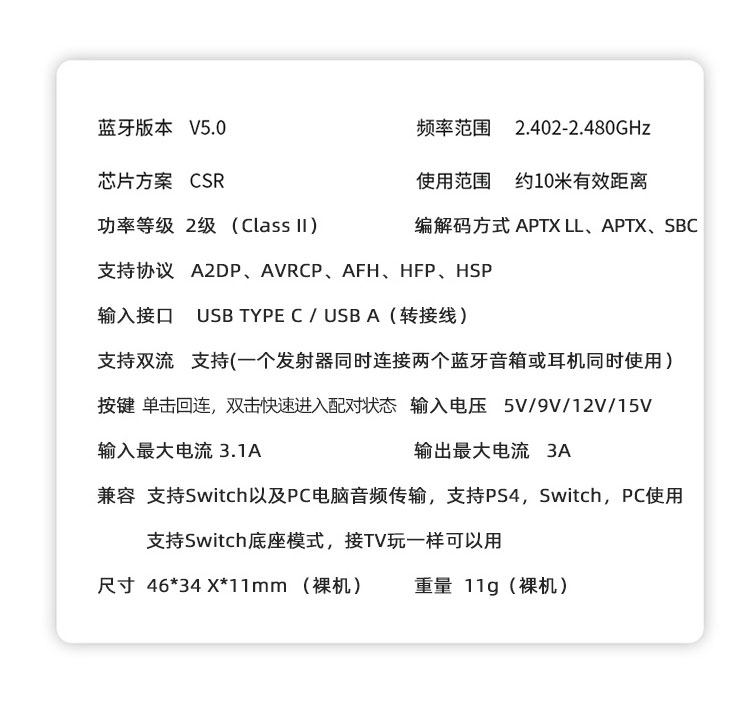 Эта версия Bluetooth Bluetooth составляет 5,0, которая может одновременно подключить два гарнитуры Bluetooth или динамики Bluetooth.Пересечение