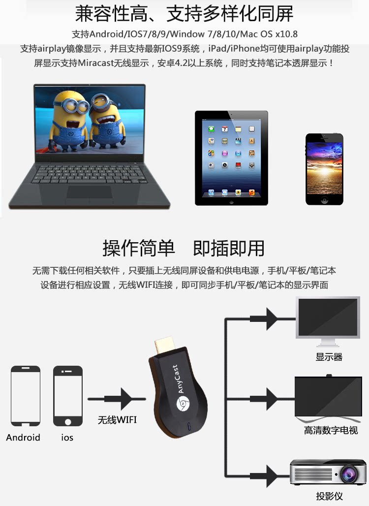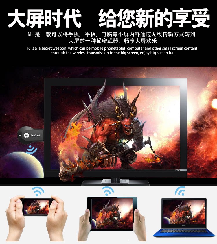 Wi -Fi Wireless HDMI Тот же скрининг AnyCast M2 Push Scure Miracast Mobile TV Проекция проекция
