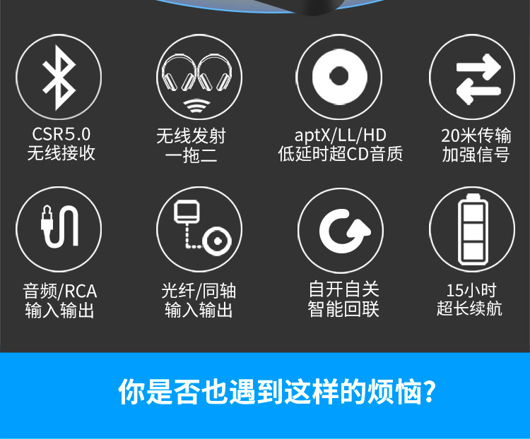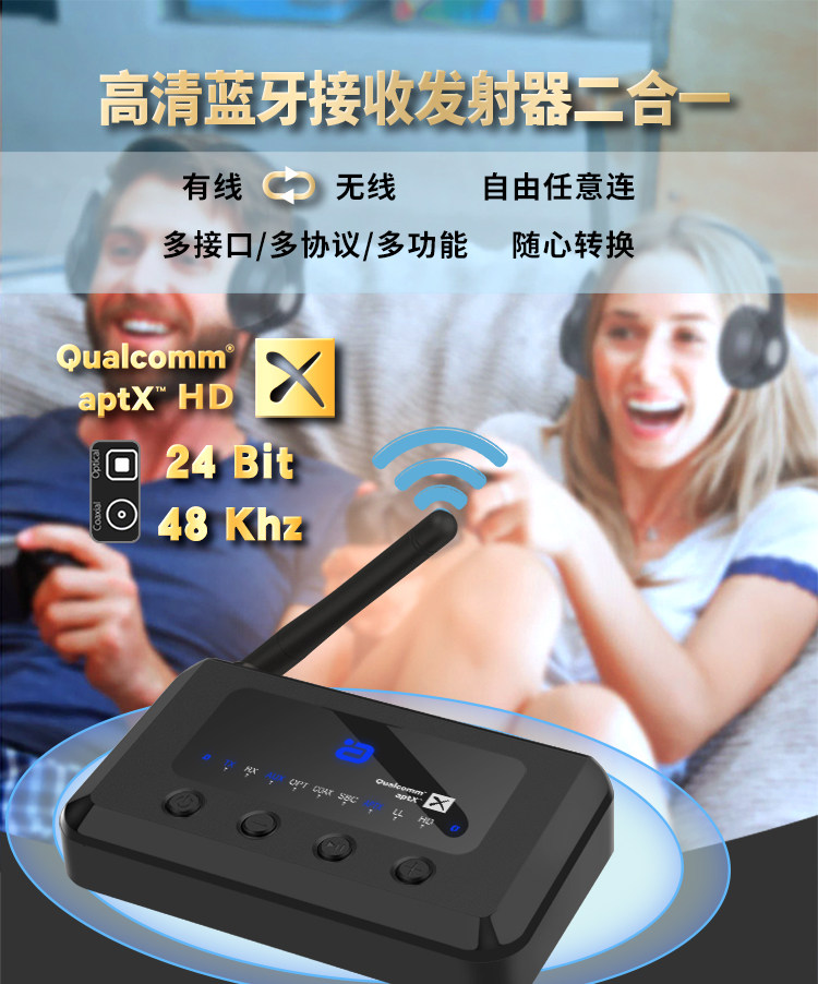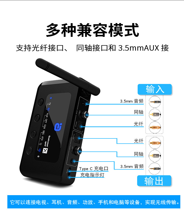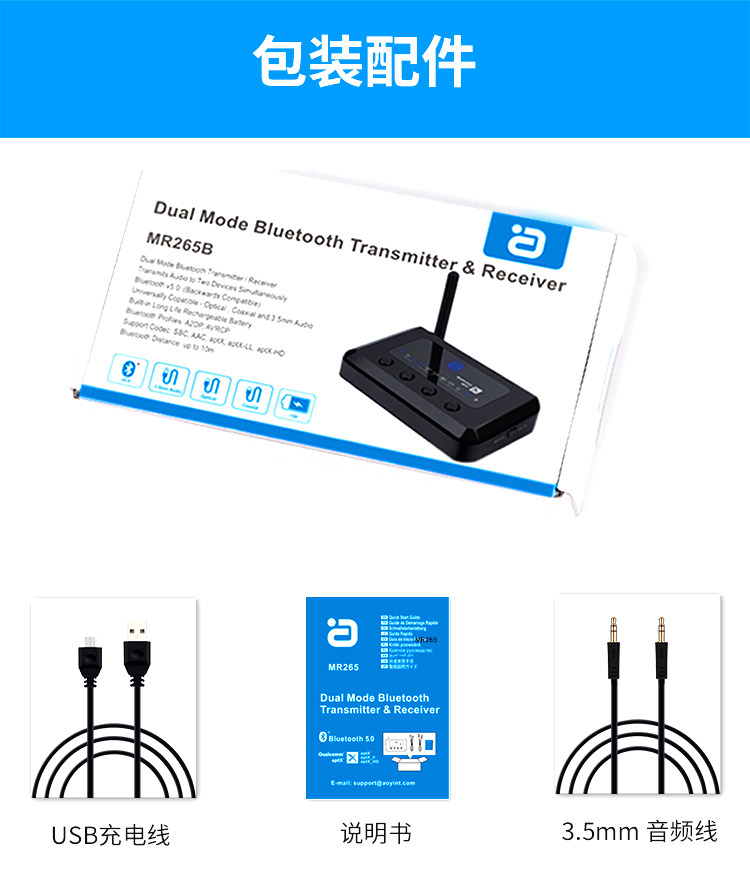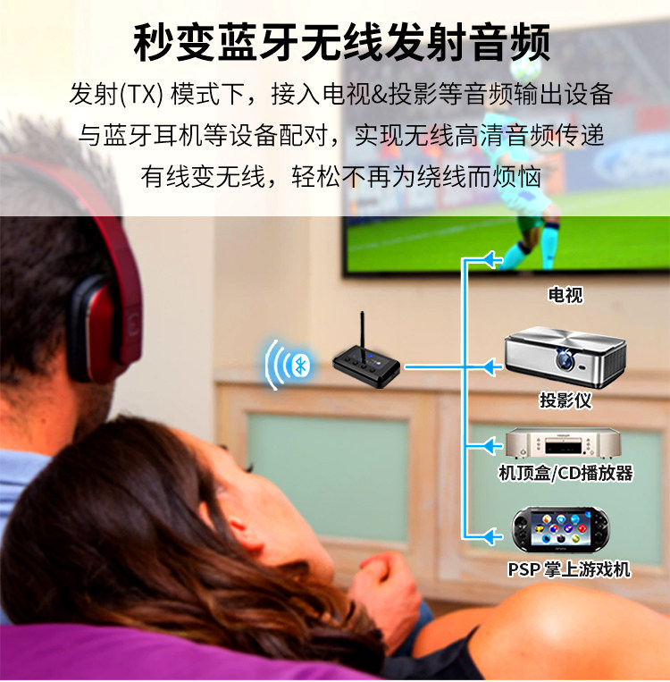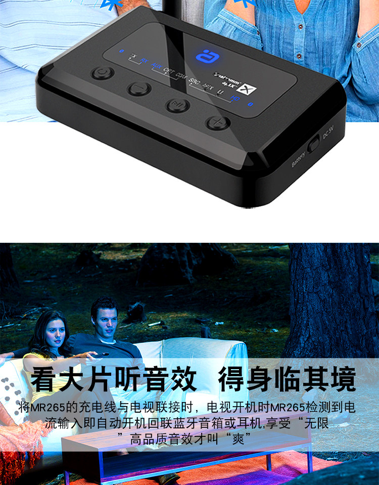 Bluetooth -адаптер 5.0 Аудио -передатчик приемник неэтруктивный APTX TV Power Projection Wireless 265