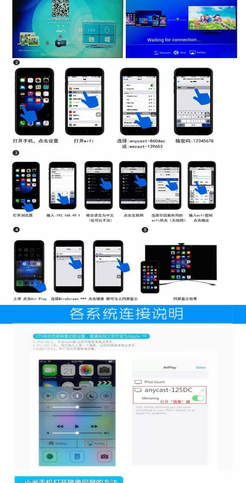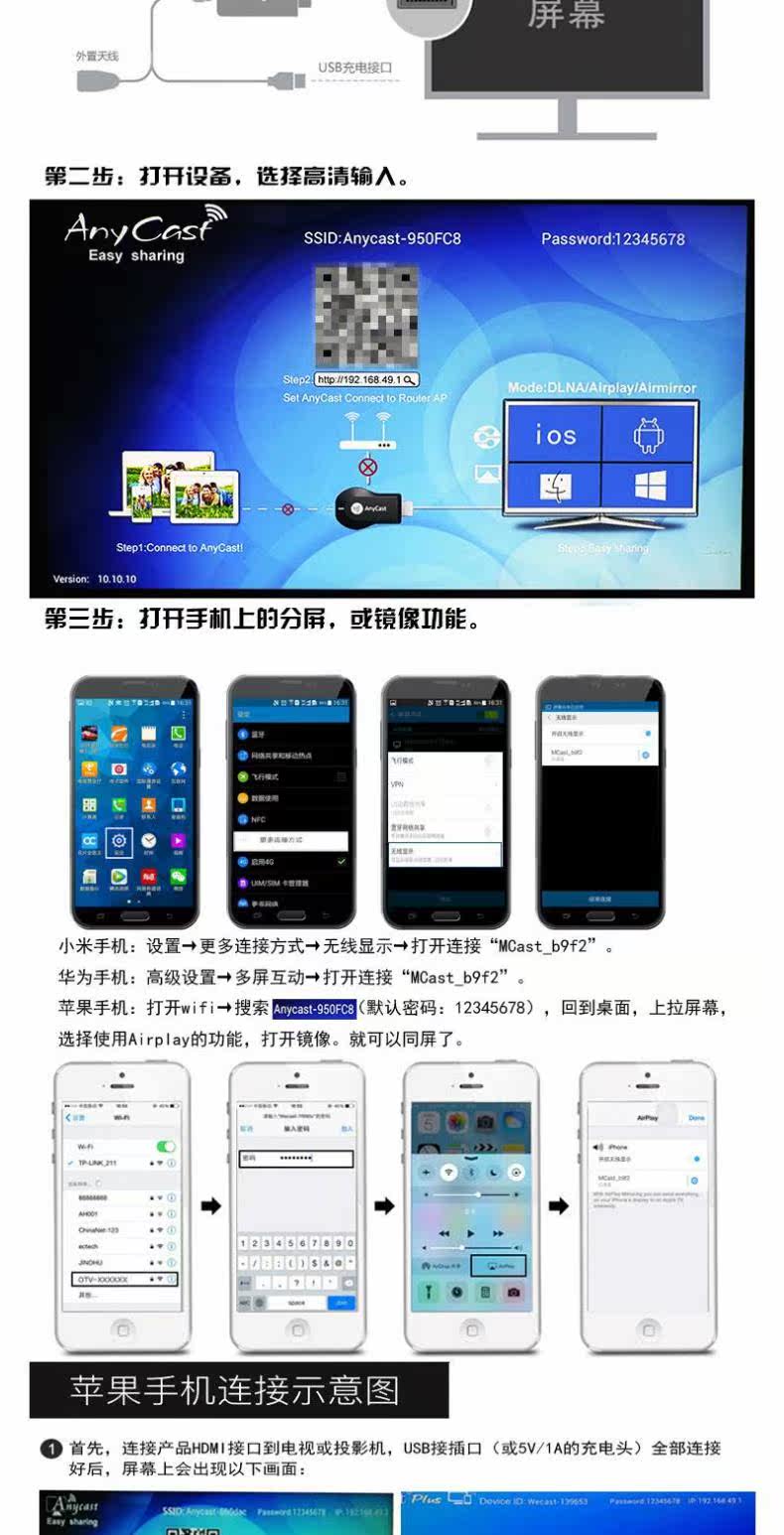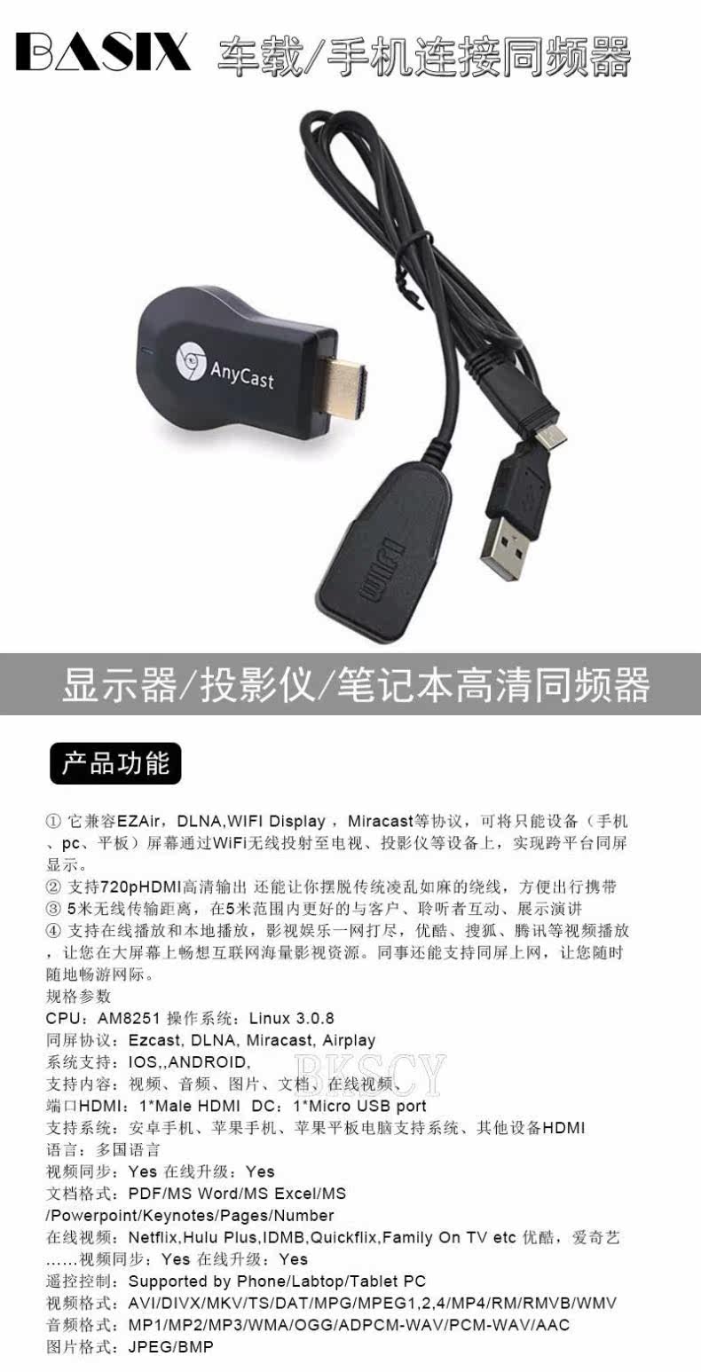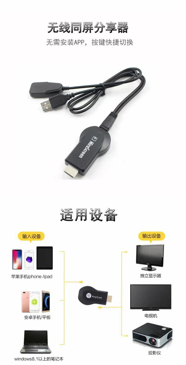 ПолемМобильный телефон беспроводной экран экран Wi -Fi Transmission HDMI TV HD Проекция Mirascreen Push Bao Ezca
