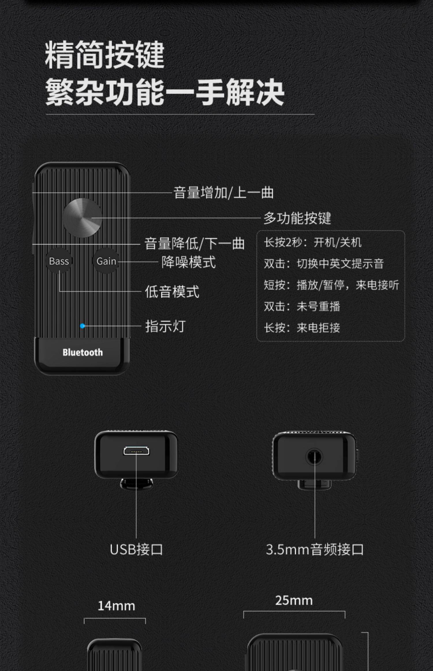 Bluetooth 5.0 Aux Aux Audio беспроводная преобразование старые звуковые динамики и наушники Power Poustone 3.5 Домохозяйство подключения мобильного телефона Внешнее модуль Bluetooth Прием преобразователь