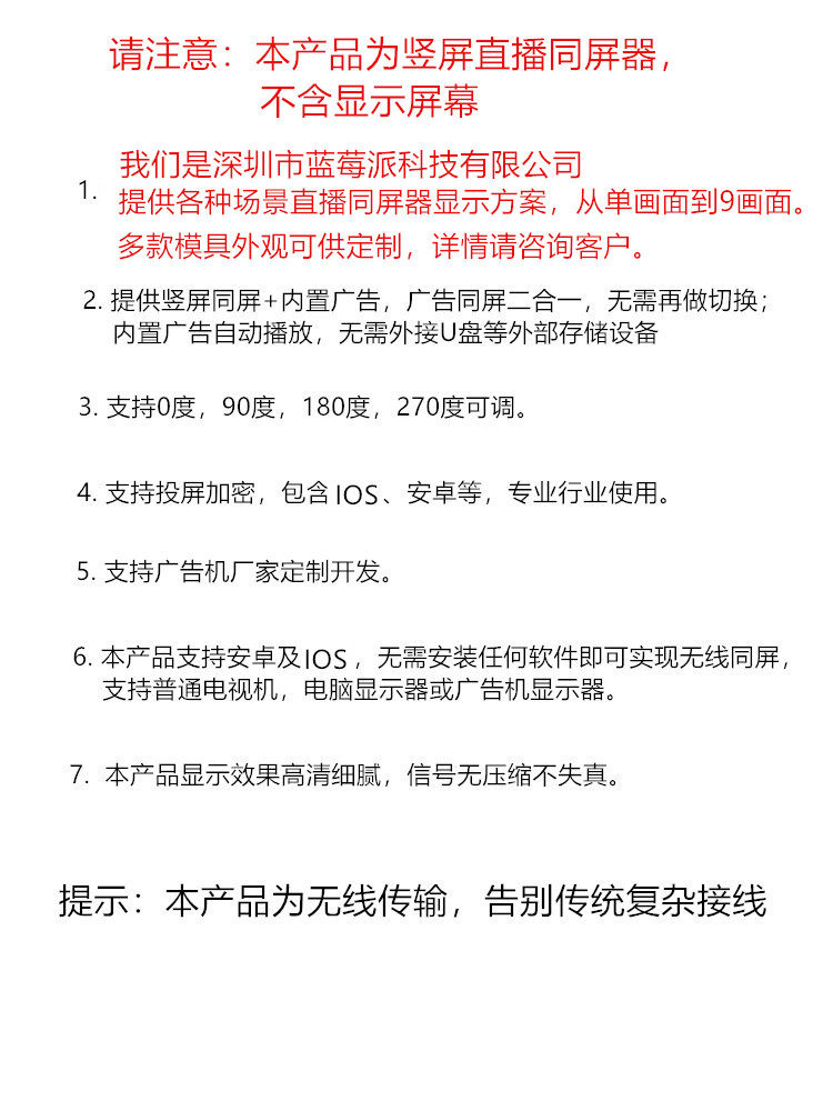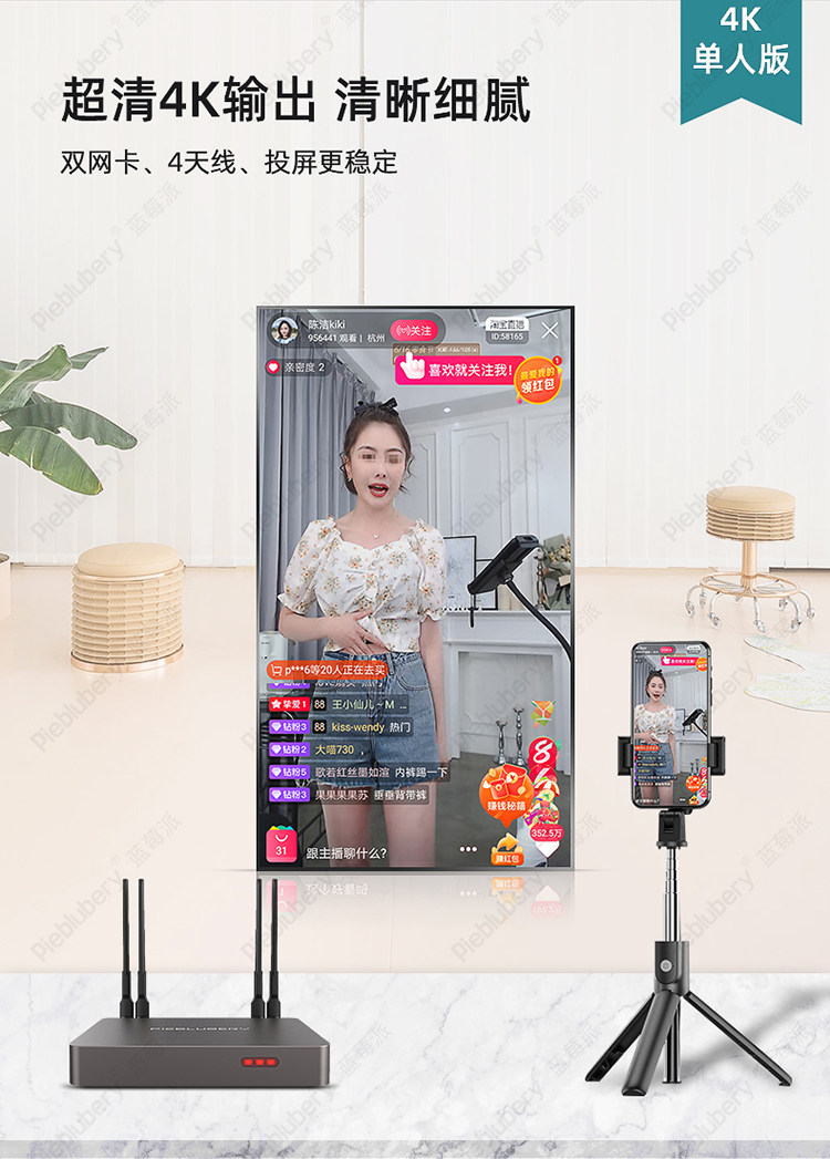 Мобильное живое беспроводное устройство экрана Douyin Fast Hand Vertical Screen Transmission 5G Dual -частотная школа чернила Wi -Free