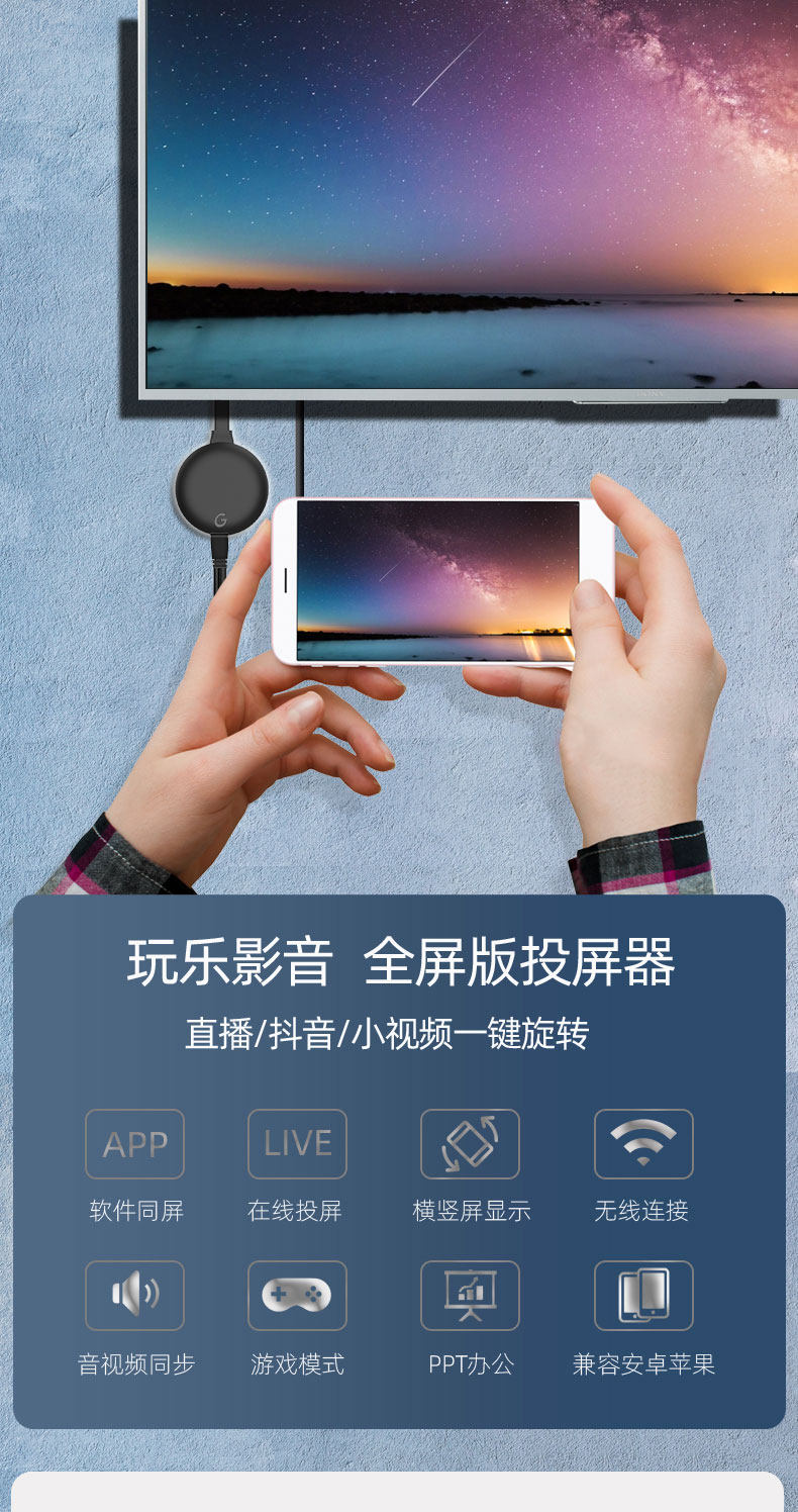 Беспроводной экранный проектор мобильный телефон и телевизионный монитор компьютера вертикальный экран Live HDMI Артефакт Artifact Home Использование 5G
