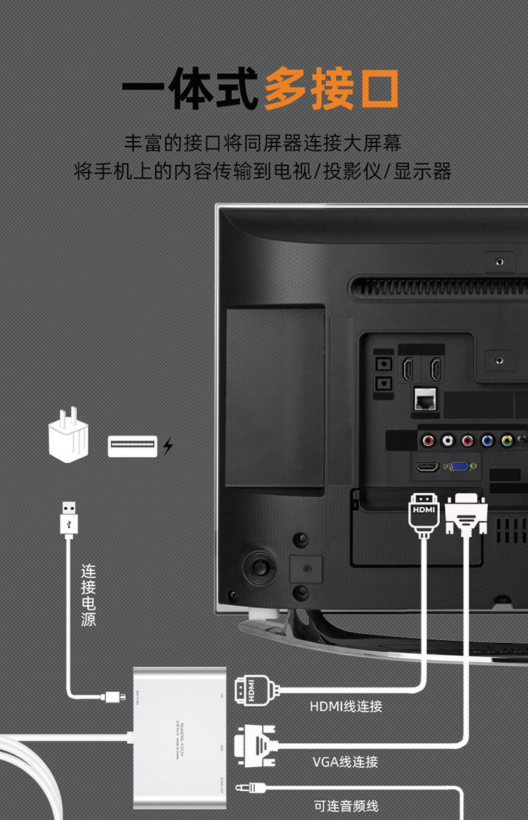 Мобильный телефон подключает один и тот же Screener Typec с HDMI Connection TV -дисплей VGA Rotor Wired Wired