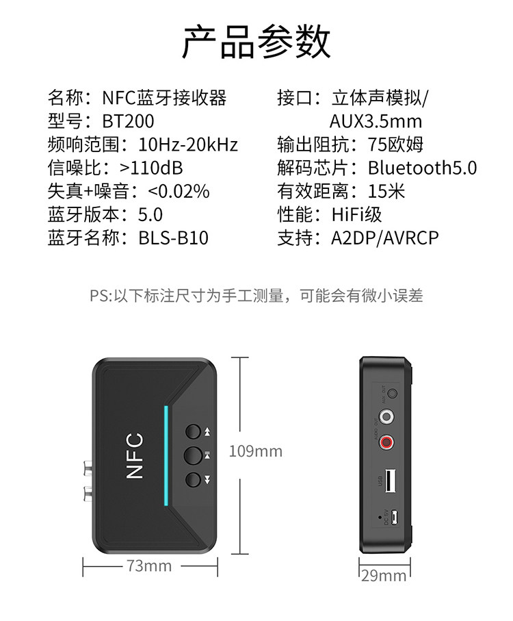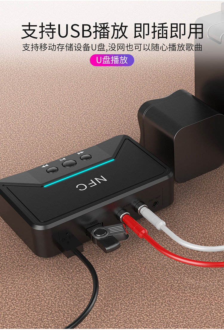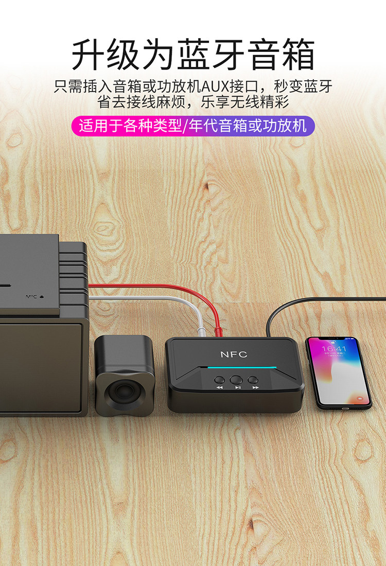 - NFC5.0 Bluetooth -приемник плюс кабель Aux