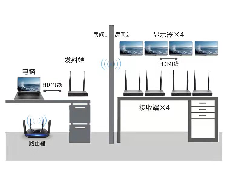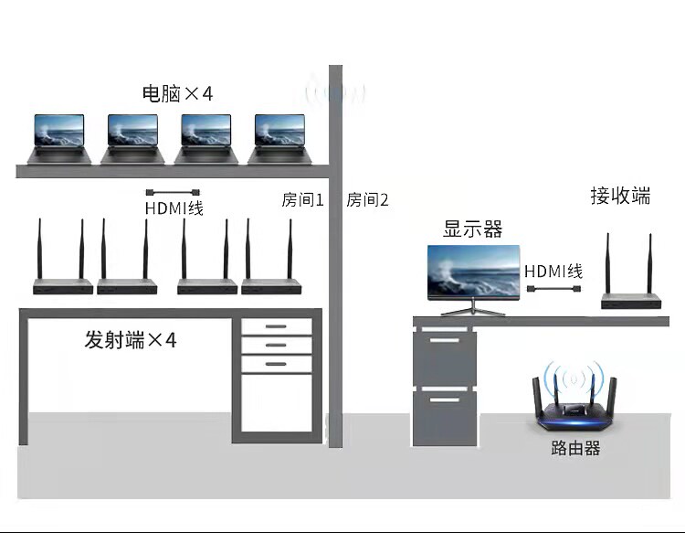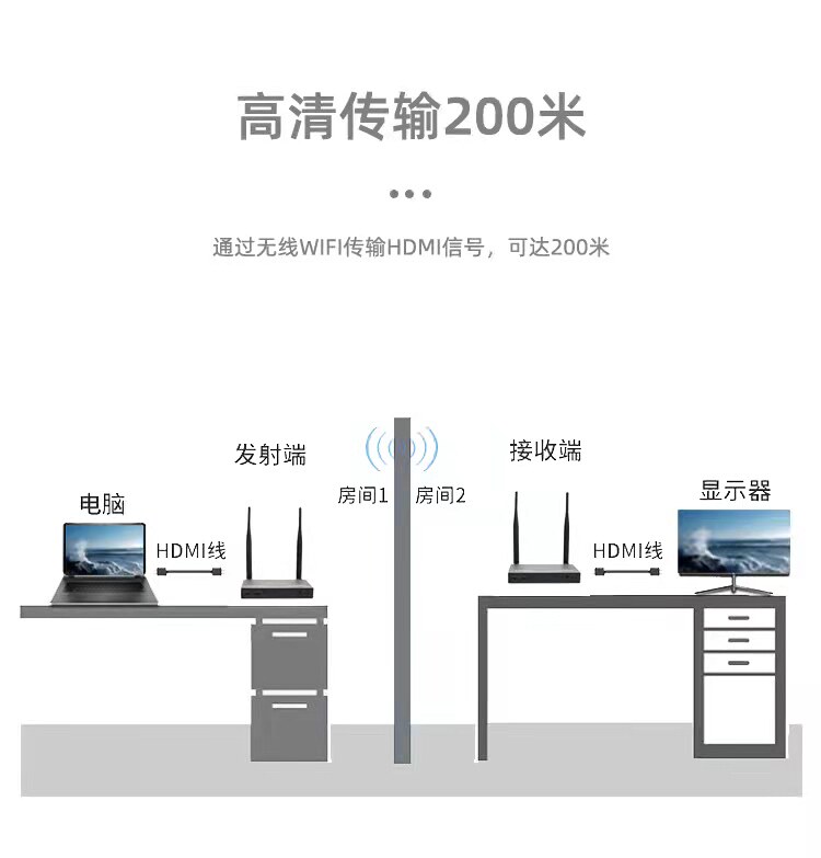 HD HDMI беспроводной передатчики трансцендентности с выстрелом с выстрелом, видео, видео, видео, пропустите тот же экран 200 метров
