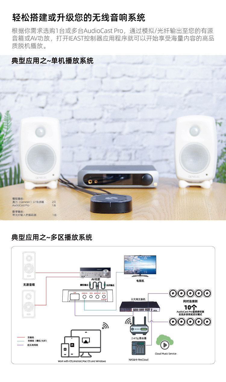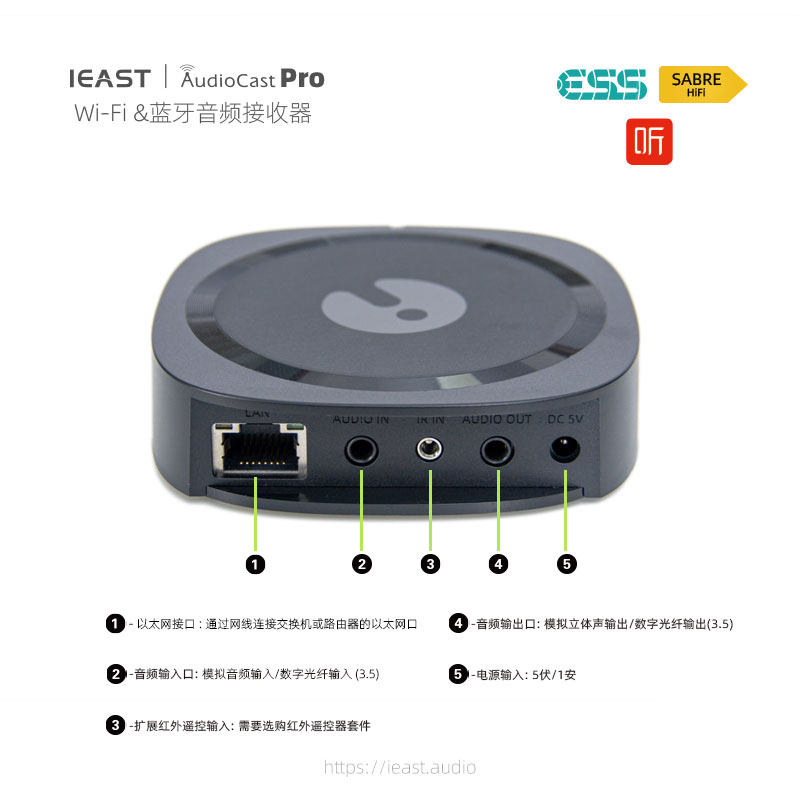 Ieast Audiocastpro M50 Wireless Wi -Fi Audio Receiver Hifi Music Box Non -Destructive Bluetooth 5