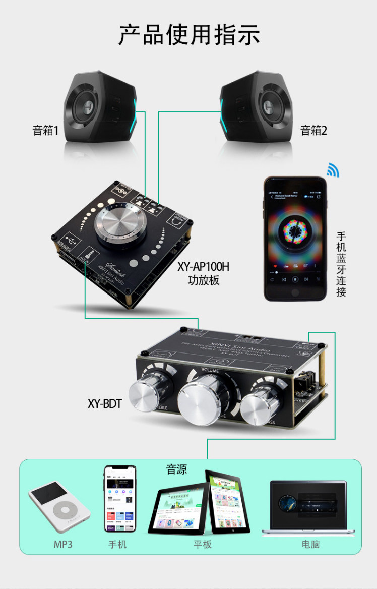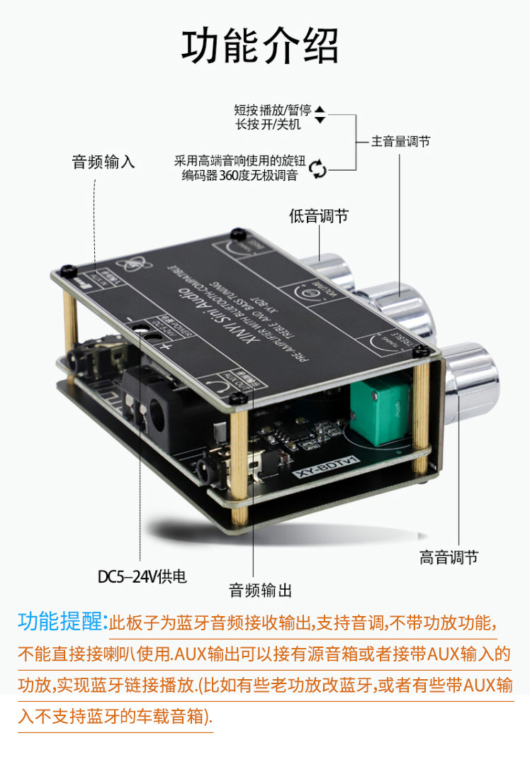 5.1 Bluetooth Audio Receiver Module Усилитель Усилитель Предварительная настройка старая мощность DIY DIY модифицирован 12 В автомобиль Aux