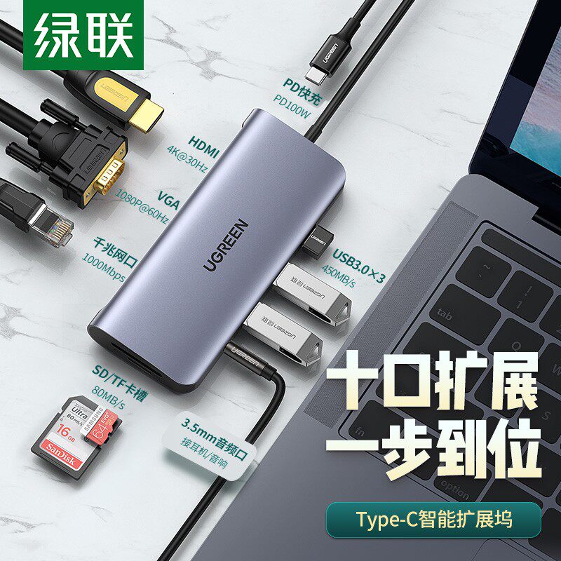 Green Union Type-C Woodwanderwood Universal Apple MacBookPro Многофункциональный десяти в одном, расширенный тибетский звук Wutong Wutong