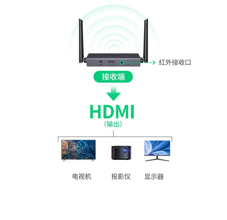 Мобильный телефон Green Union Wireless Screener с тем же экраном преобразователя 200 метров Передача аудио и видеоронизации HDMI HDMI HD 1080P