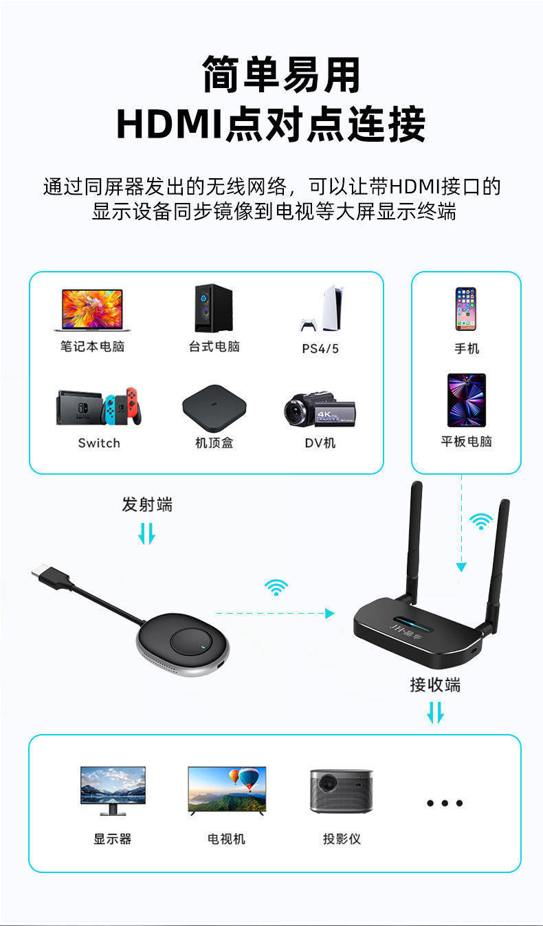 Jinghua Wireless Mobile Phone Подключение телевизора беспроводной и тот же экран HD -проектор HDMI Transmission Converter