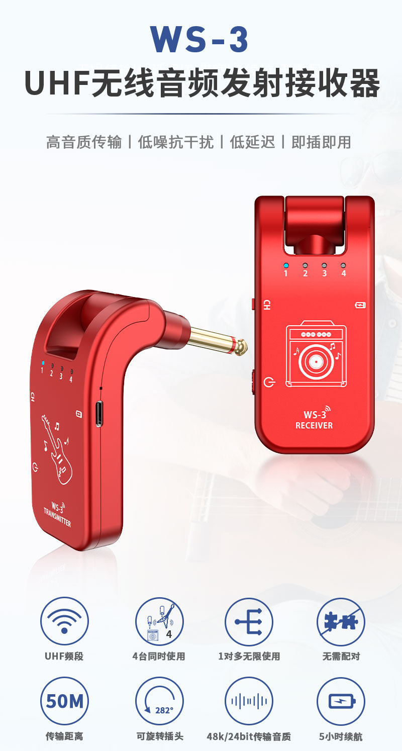 UHF Electro -Acoustic Instrument Wireless Audio Запуск Получение электрогитары Blowing Pipe Bass Без потерь, без задержки передачи