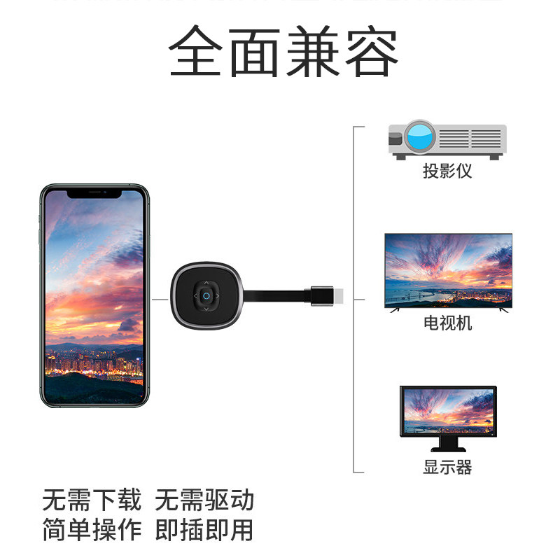 Мобильный телефон беспроводного скрининга подключает телевизор на том же экране HDMI -дисплей, преобразующий артефакт подходит для Xiaomi Huawei Samsung