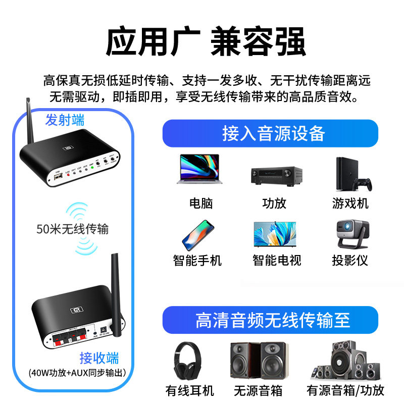 5,8 г высокопрофильной беспроводной аудиопередачи приемопередатчика волокна коаксиал 40 Вт усилитель окружающий звук без проводки