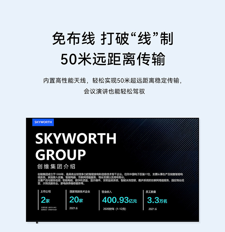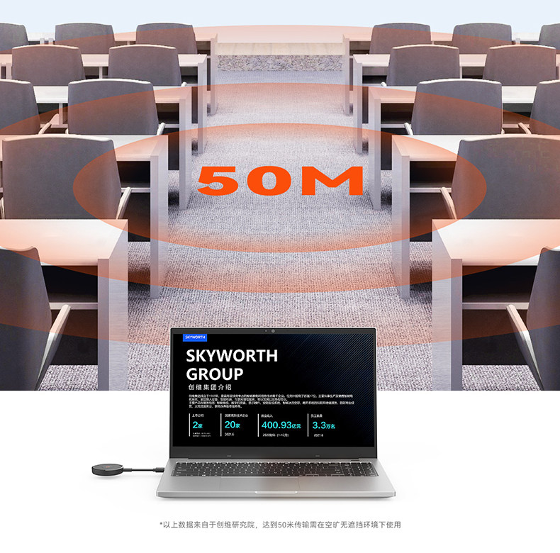 Беспроводной проекционный HDMI-передатчик Skyworth с удлинителем экрана для отправки и приема данных с ноутбука в разрешении 4K HD, подключенного к телеконференции
