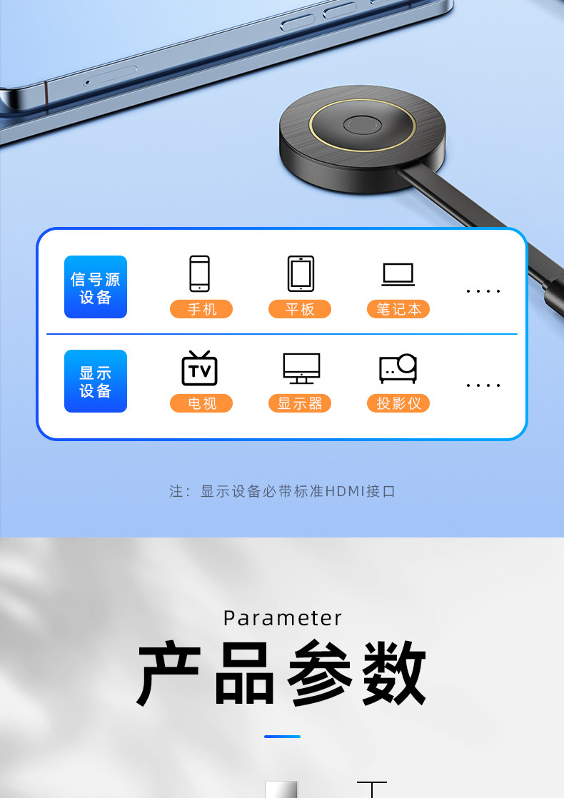 Проектор беспроводной экраны мобильного телефона подключен к тому же экрану TV Горизонтальный экран Вертикальный экран 1307 Домохозяйство HDMI Display Transmission Universal AA