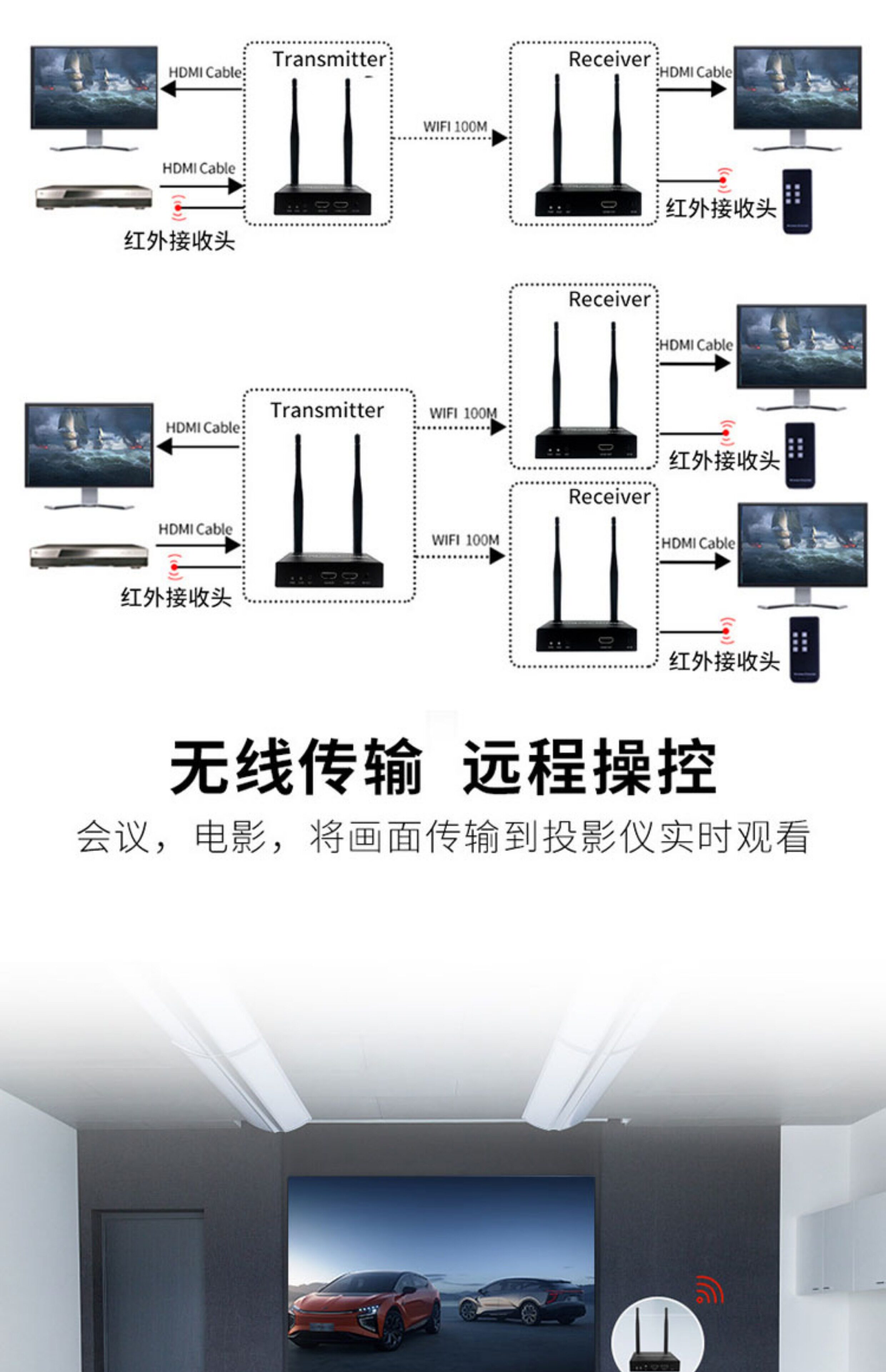 Беспроводной передатчик, ноутбук, проектор, 200м, электрические сигналы мозга