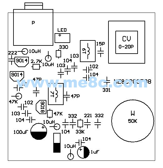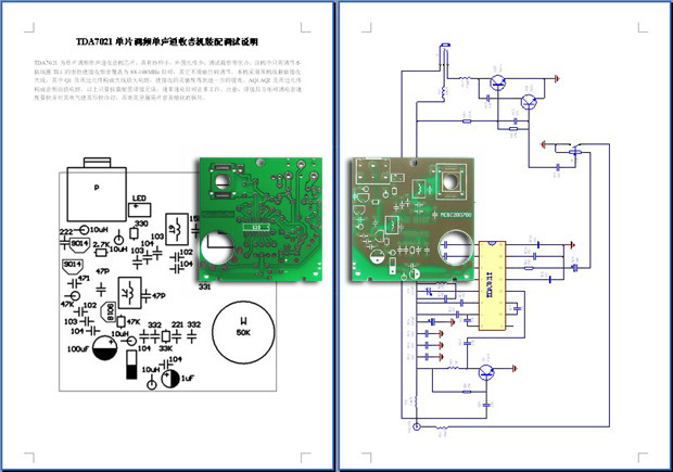 Плата использует интегрированную цепь Patch Patch TDA7021T в качестве приемной, включая первую схему усилителя антенны 9018, а в аудио схеме используются два наушника с усиливающим приводом 9014.Изысканная одна панель,Размер: 50x50 мм.Схема схема вспомогательной схемы и диаграмма установки.
