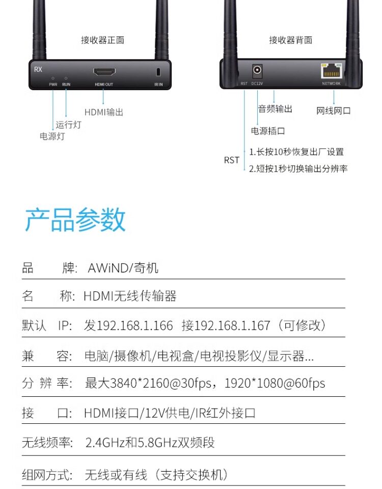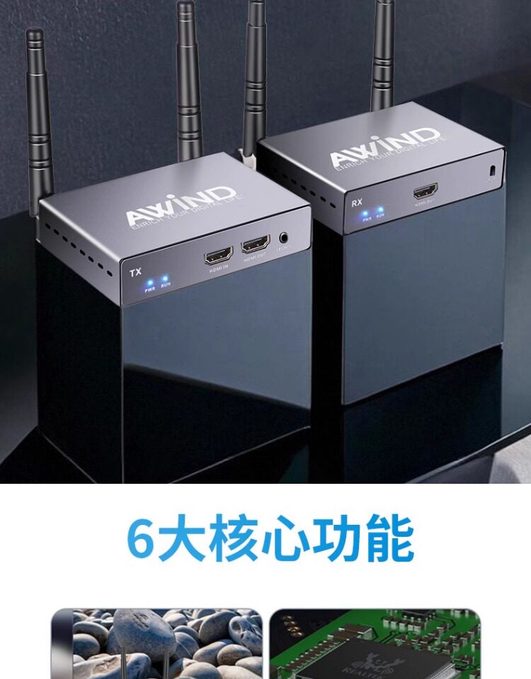 - Приемник 1080P на 100 метров (один приемник не может транслировать экран)