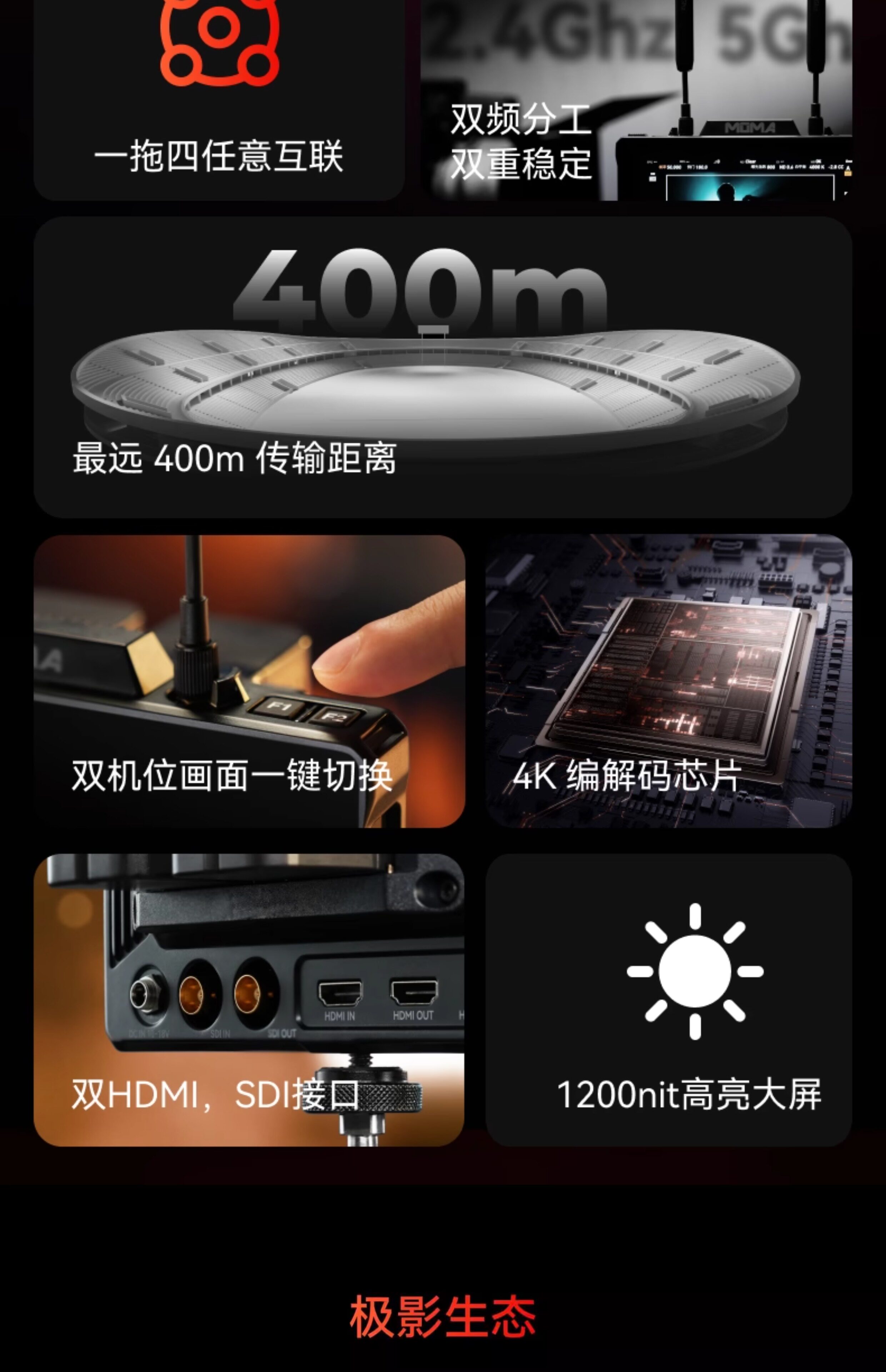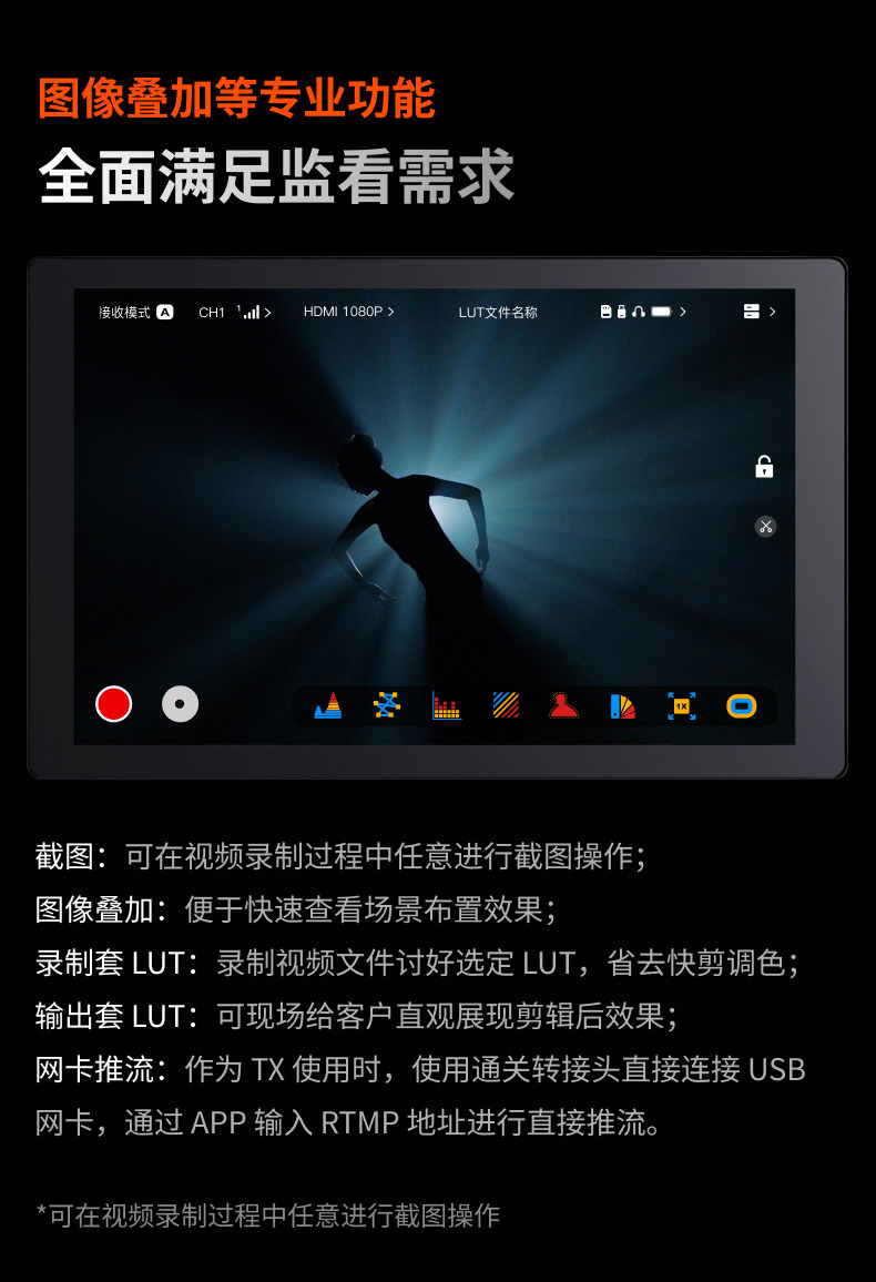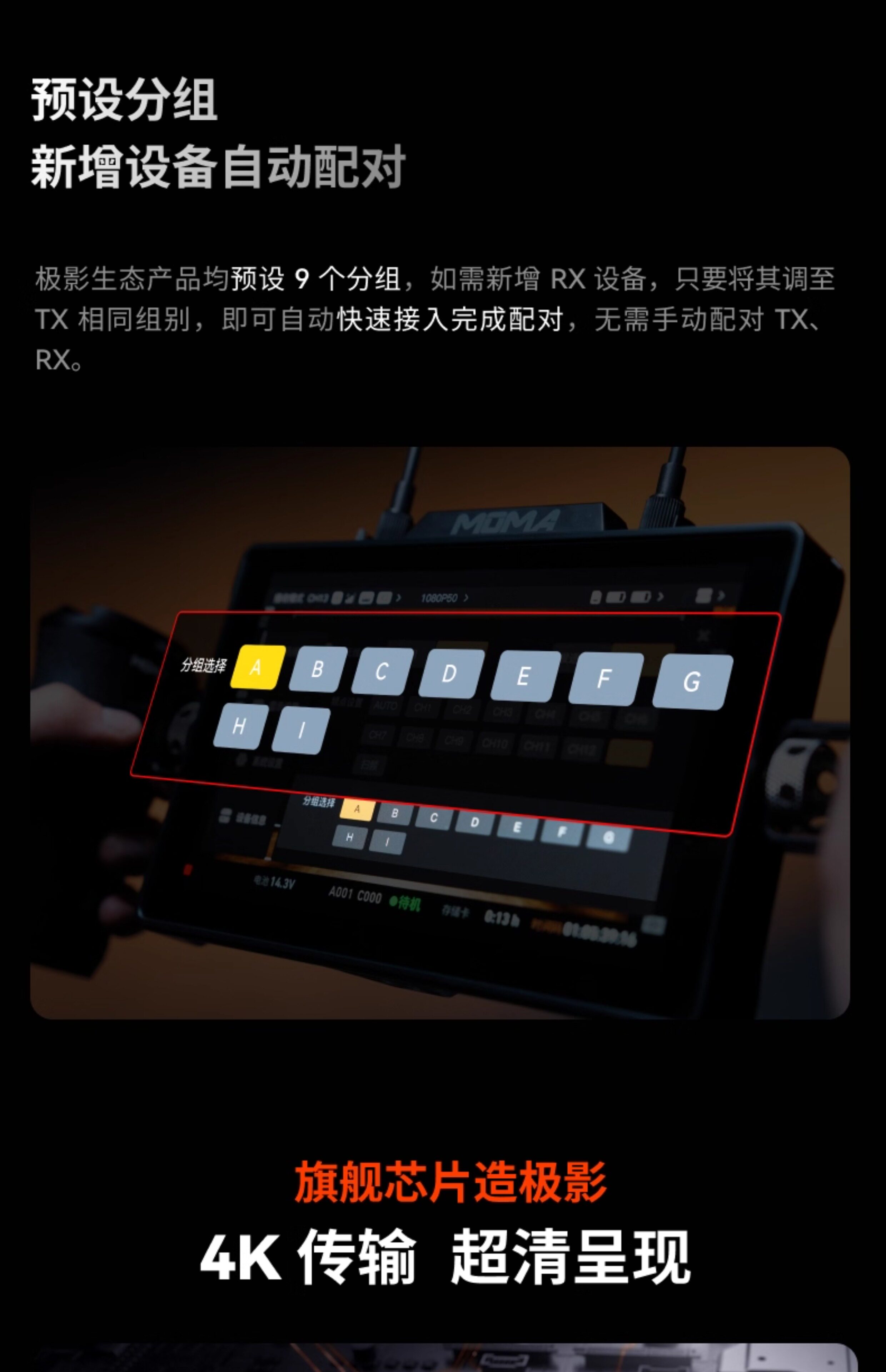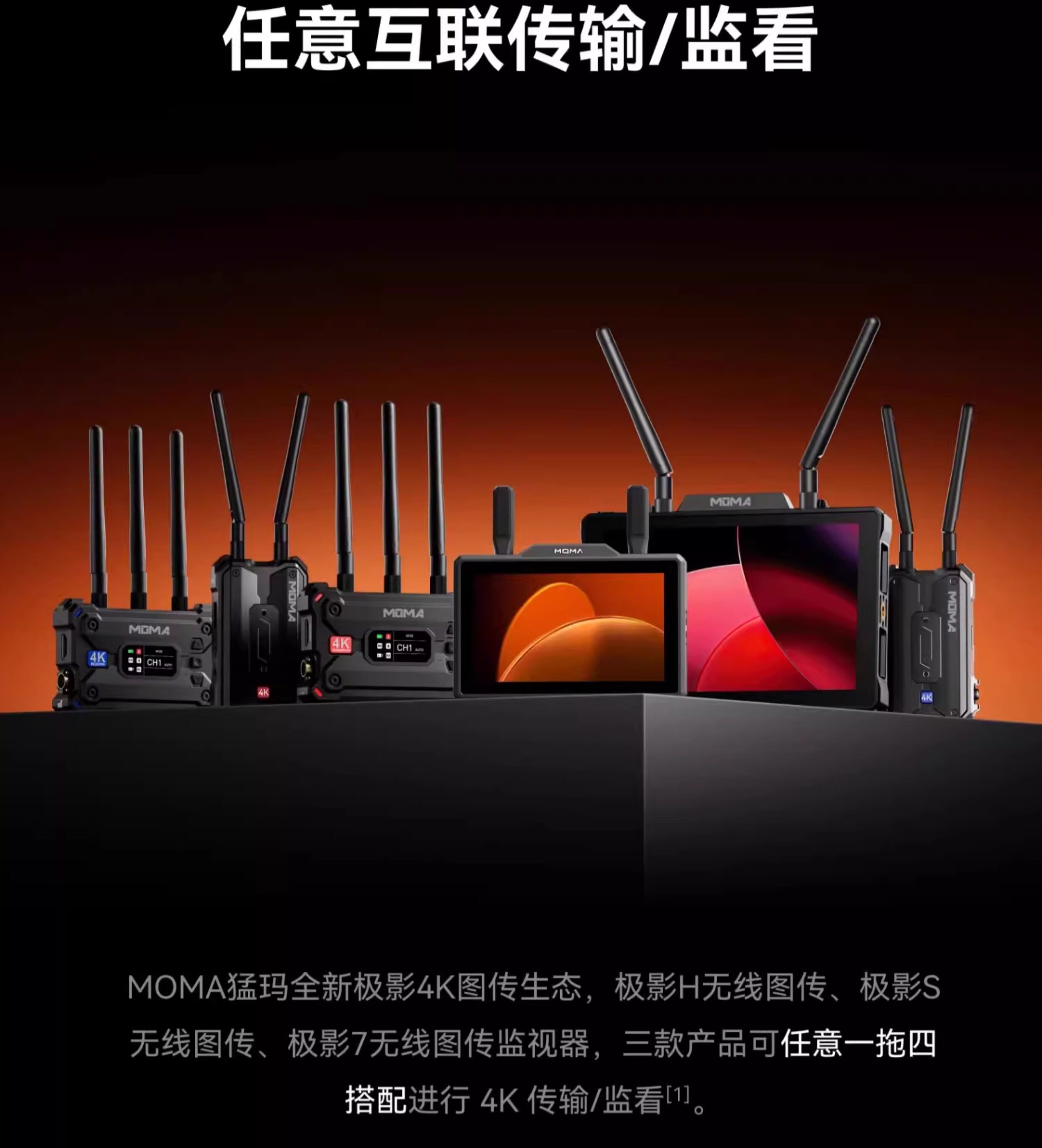 Монитор с беспроводной передачей изображения Mammoth Встроенный приемопередатчик Jiying 7 с разрешением 4K и высокой четкостью для режиссера кино и телевидения, монитор для прямых трансляций Mammoth