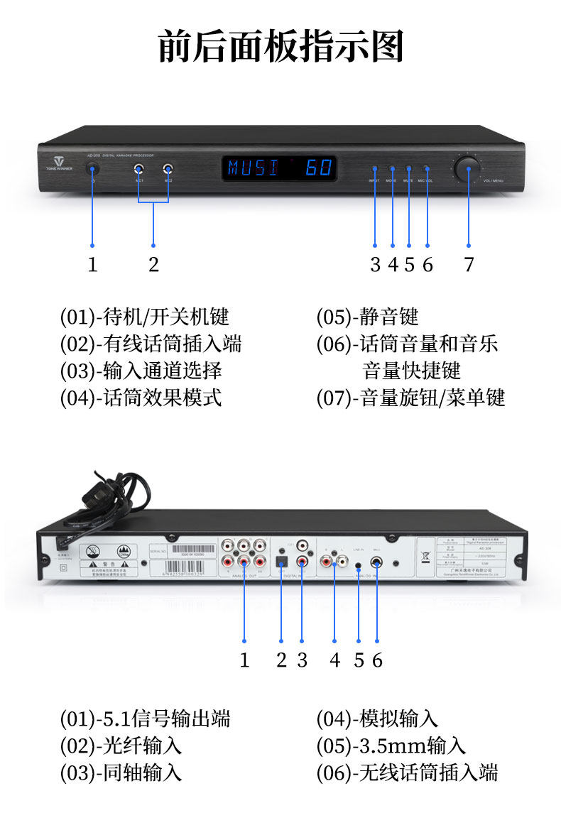 Победитель/Tianyi AD-308 Профессиональный кара ОК HYBER HOVER KTV Цифровой предварительный эффект