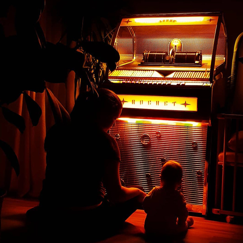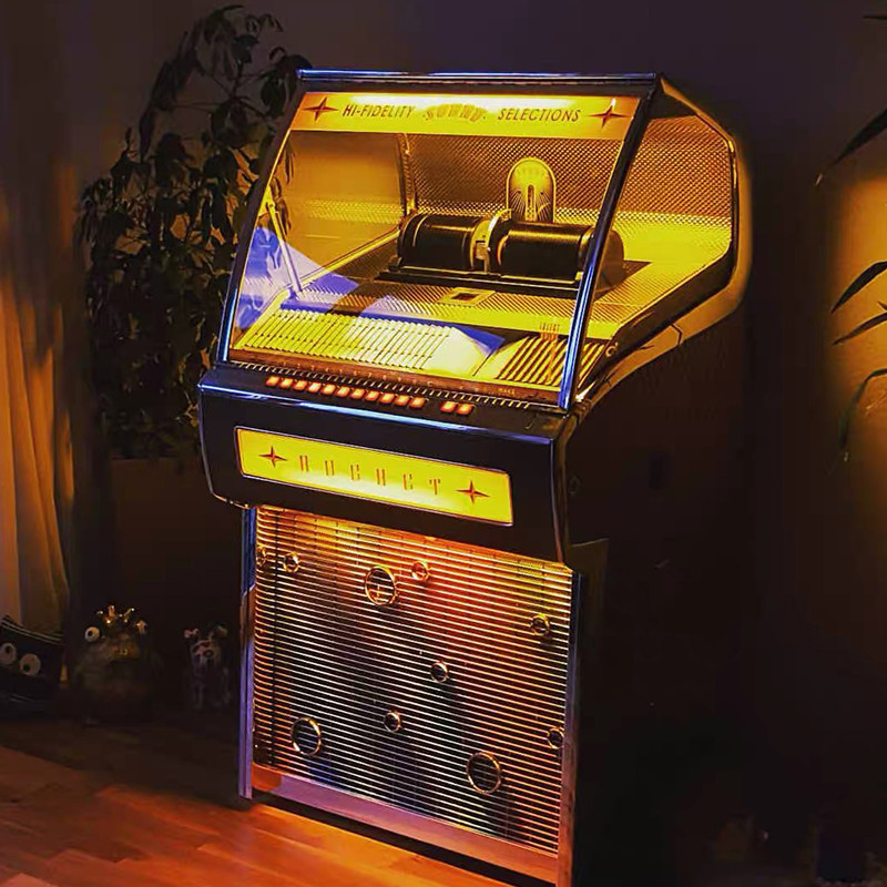 Британский старый ретро -точечный певец Jukebox большой монетный певец CD Machine Marchant Audio может вместить 80 листов