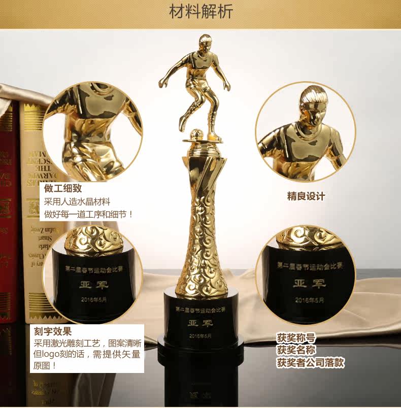 Футбольный трофей золотые сапоги Crystal Trophy Custom Metal Talers Talers Talels Talers 0511