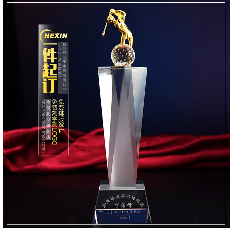 Награда Crystal Trophy Golf Award, один выстрел, чтобы сделать награду чемпионата, награда по соревнованиям, металлическая медаль, произведения