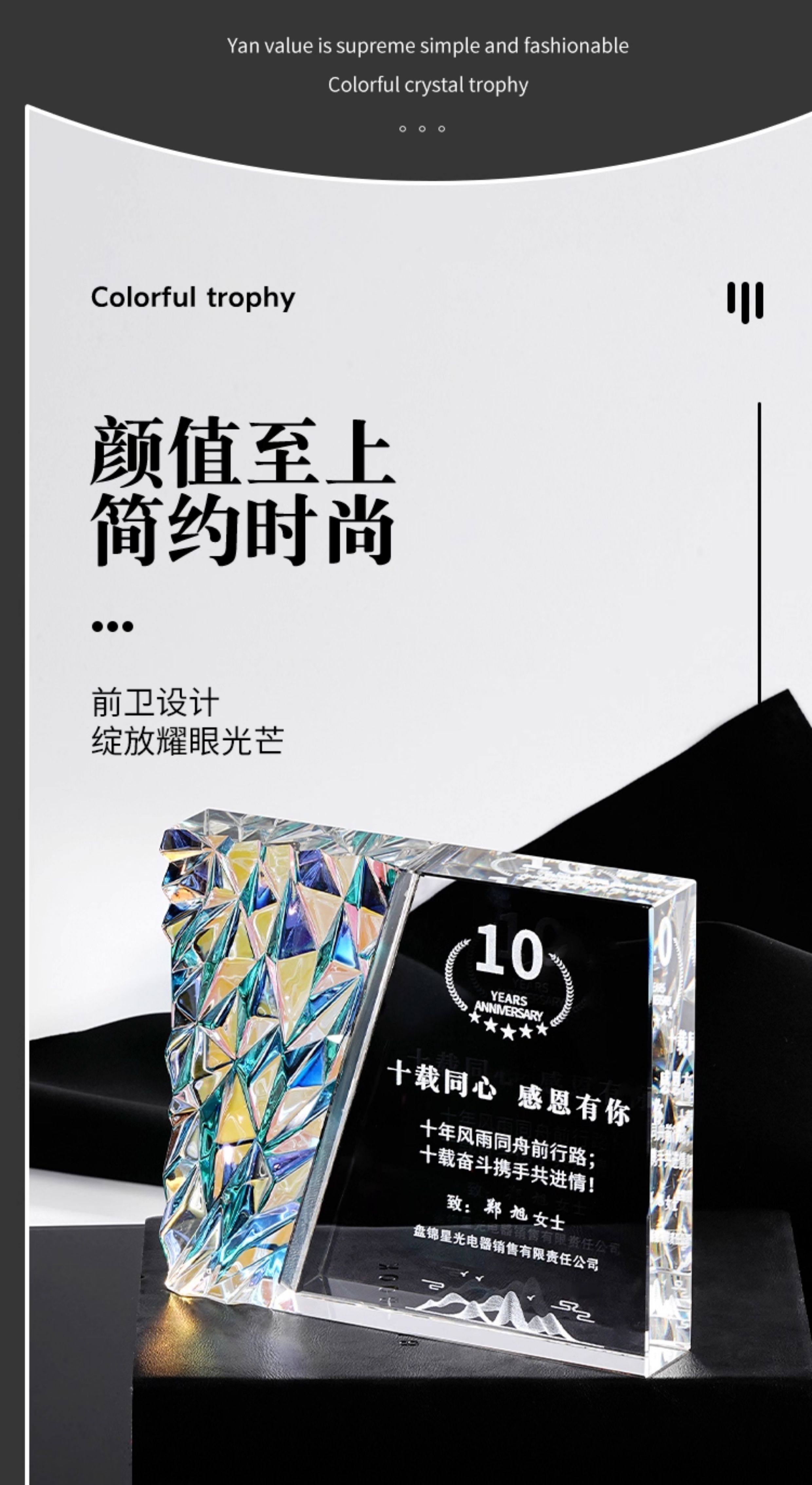 Креативный красочный хрустальный трофей, персонализация, высококачественный авторизованный бренд, награда на ежегодном собрании, почетная сувенирная медаль, изготовление на заказ