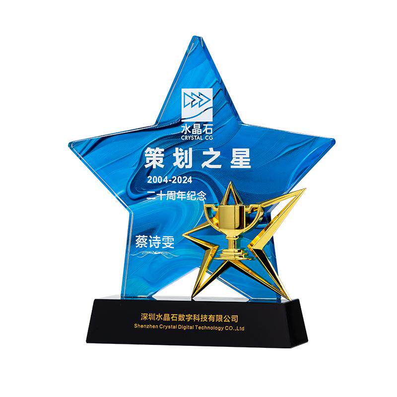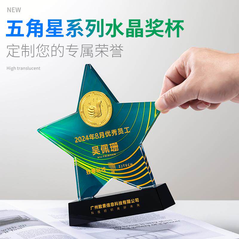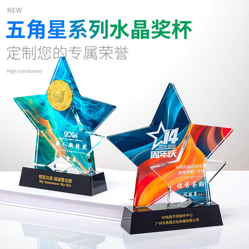 Индивидуальный креативный хрустальный трофей с пятиконечной звездой, изготовленная на заказ металлическая медаль для награждения ежегодного собрания выдающихся сотрудников и новичков команды.