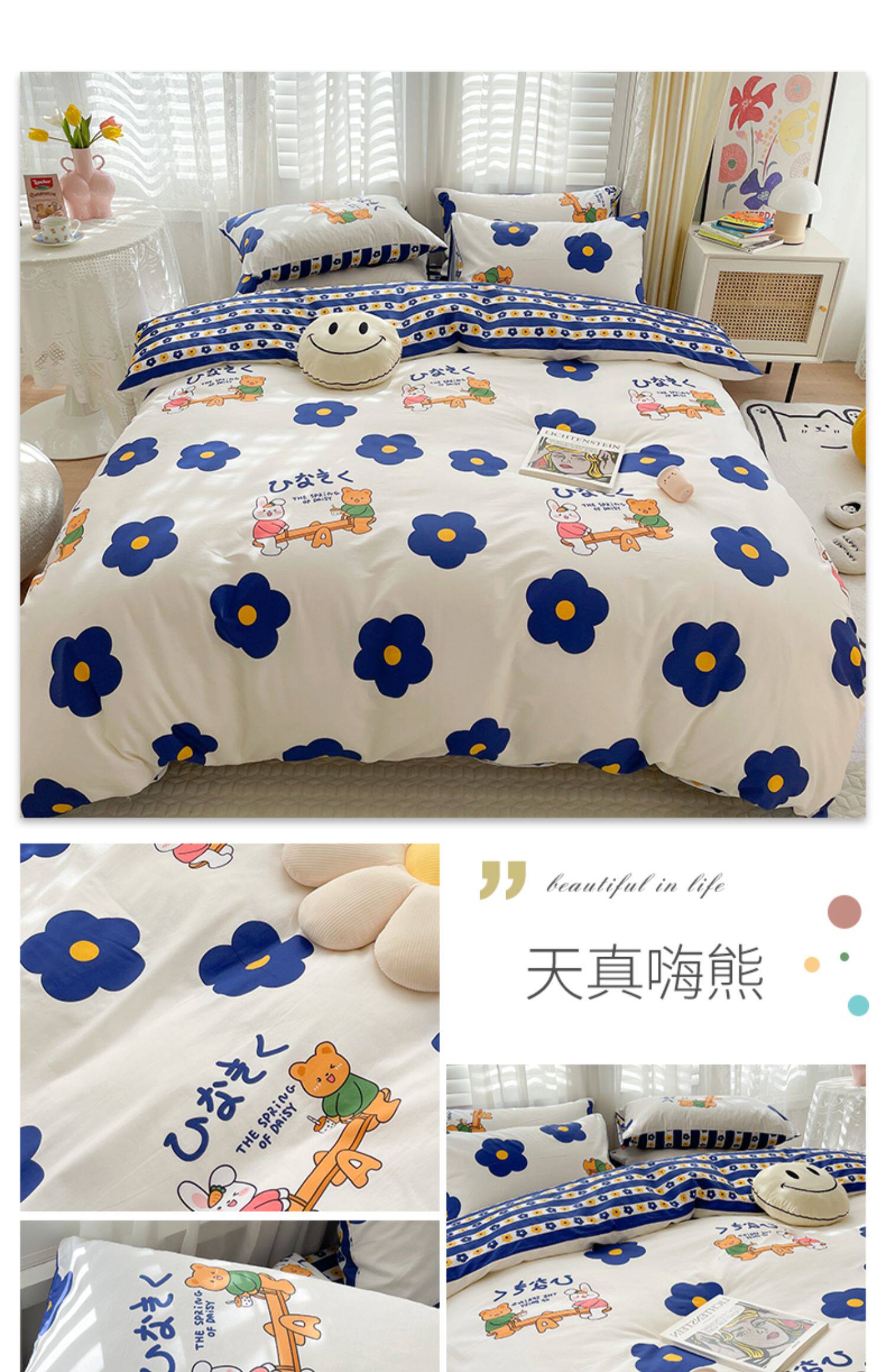 南极人 Хлопковый комплект, хлопковое одеяло подходит для мужчин и женщин, пододеяльник, детская простыня, покрывало, 4 предмета, простой и элегантный дизайн, 3 предмета, скандинавский стиль