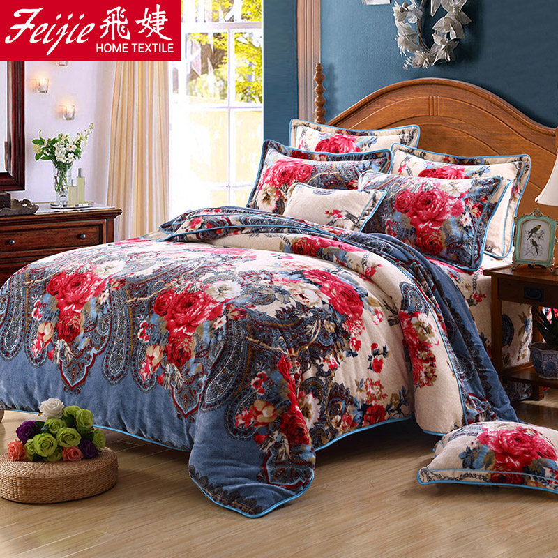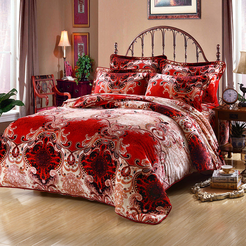 Демисезонный удерживающий тепло коралловый комплект, пододеяльник, простыня, покрывало, 4 предмета, 1.8м