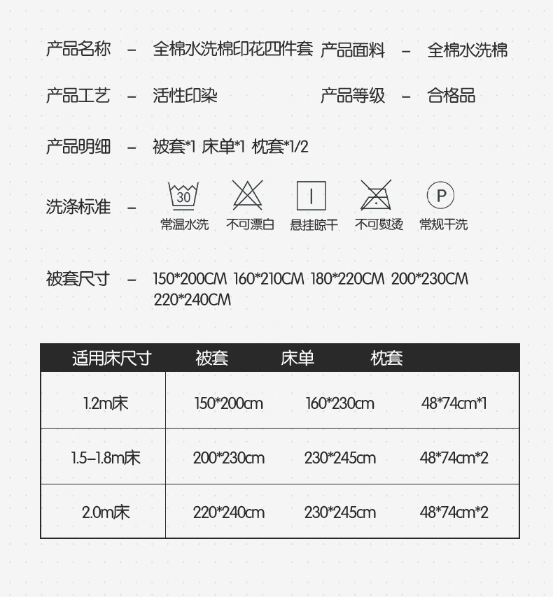 | Ширина кровати: | 0,9 м (3 фута) кровать, подходящая для 150*200 стеганых одеял [три -купюр]], 1,2-1,35 м (4 фута) кровати, подходящие для 150*200 стеганых одеял [набор из трех частей], 1,5 м (5 футов) кровать, подходящая для 200*230 стеганого одеяла [набор из четырех человек], 1,8 м (6 -футов) кровать подходит для 200*230 стеганого одеяла [четырехэтажный набор] |