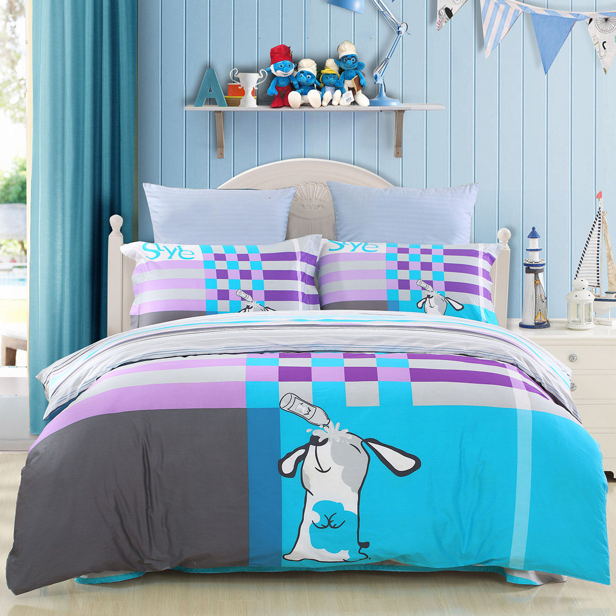 百丽丝 Мультяшный хлопковый комплект, одеяло, пододеяльник для кроватки, простыня, 4 предмета
