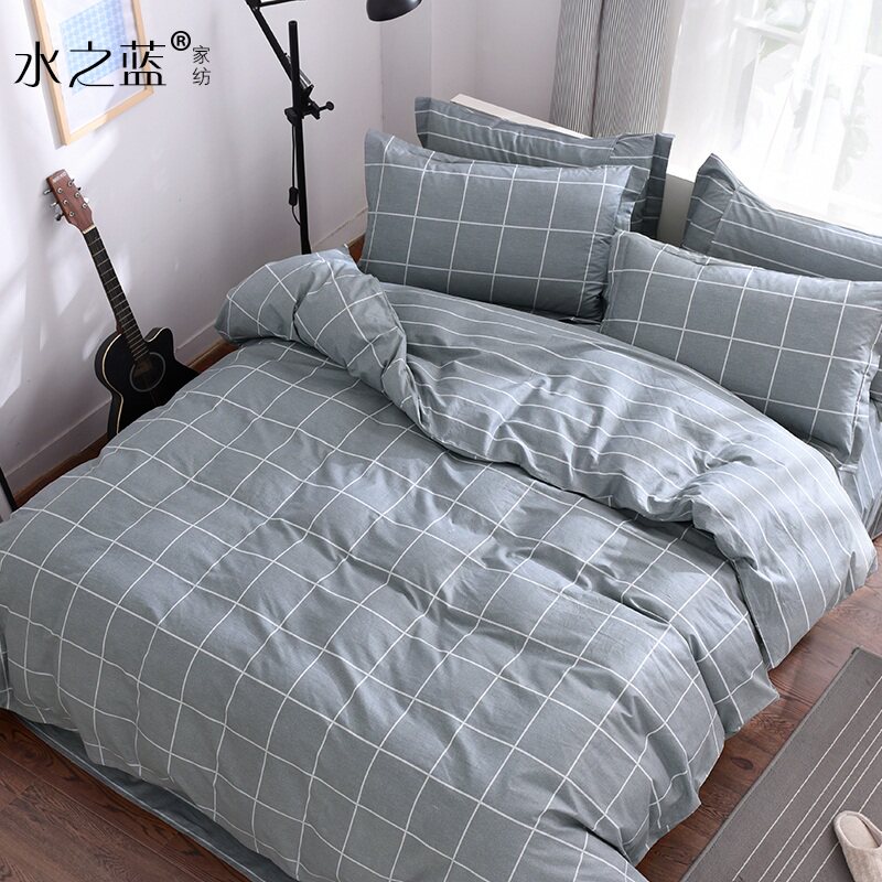 水之蓝 Хлопковый комплект, простыня, пододеяльник, 4 предмета, простой и элегантный дизайн, 1.5м, 1.8м, 3 предмета