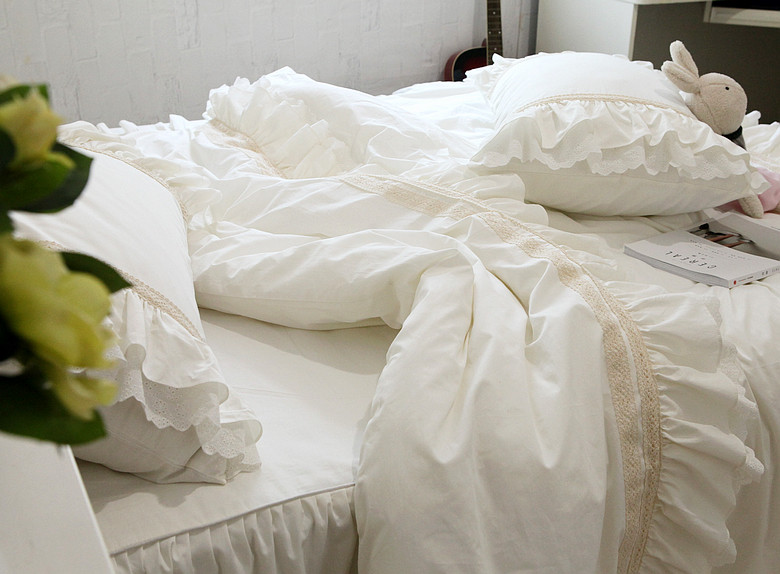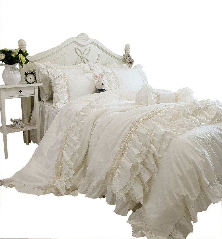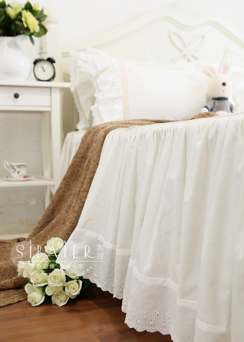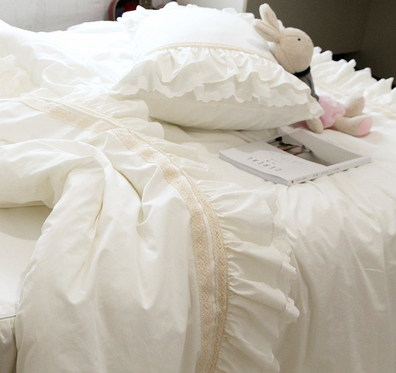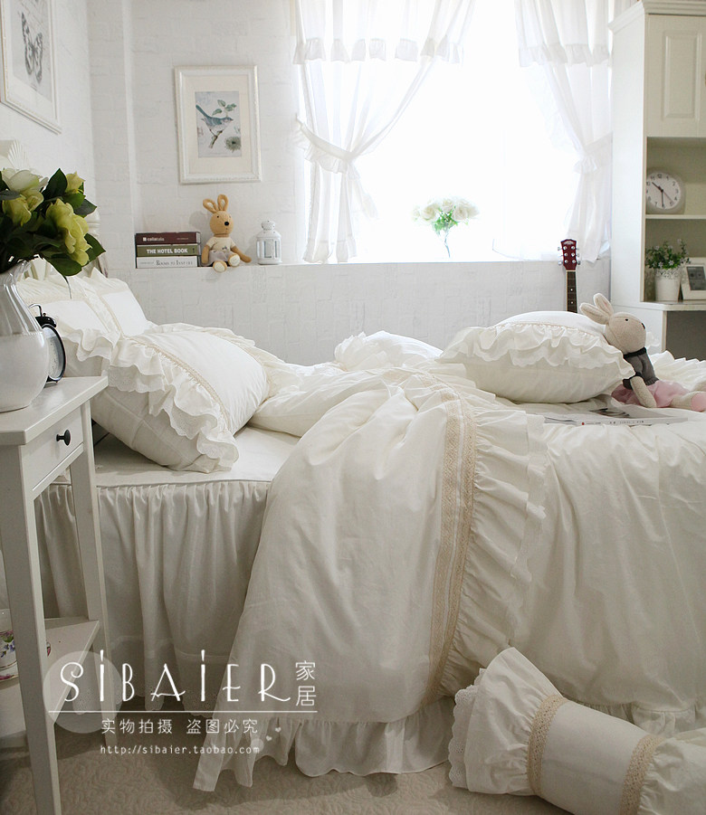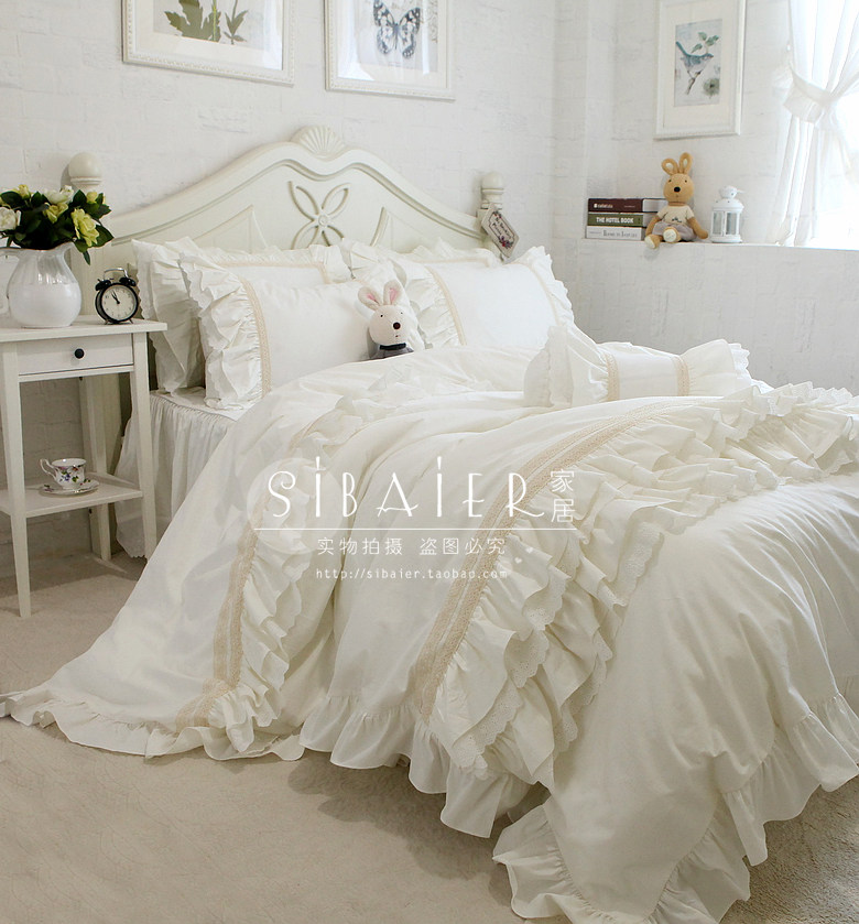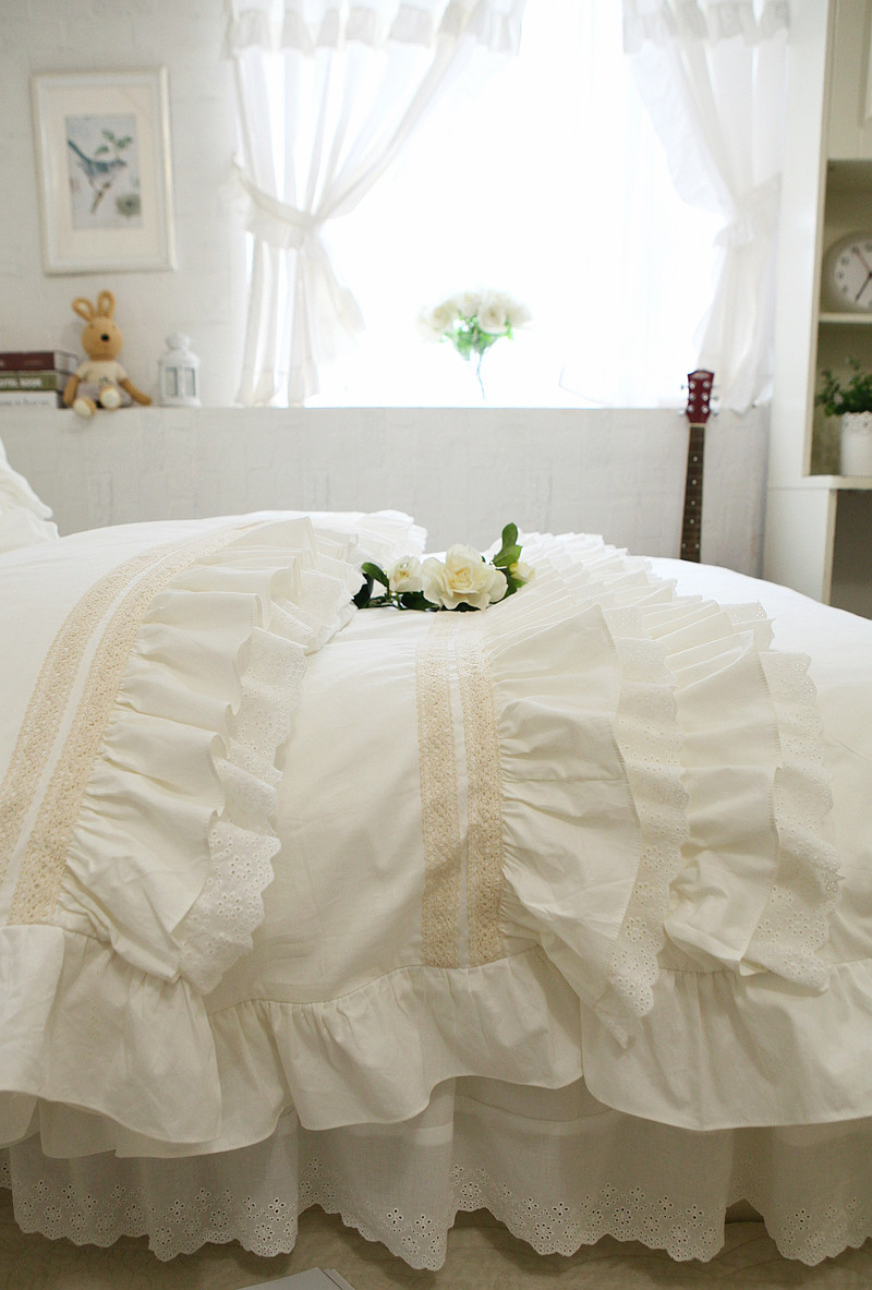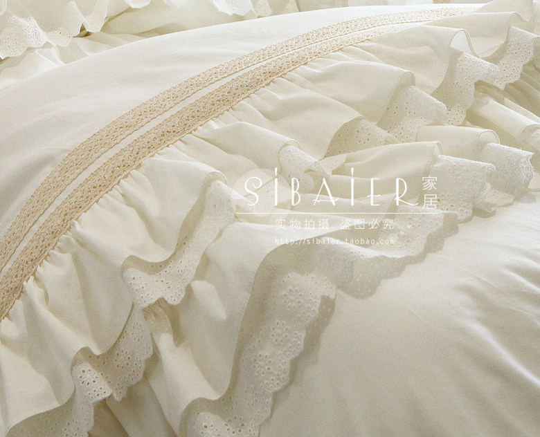 Корейское бежевое хлопковое покрывало, пододеяльник, комплект, французский стиль, цветочный принт, 4 предмета