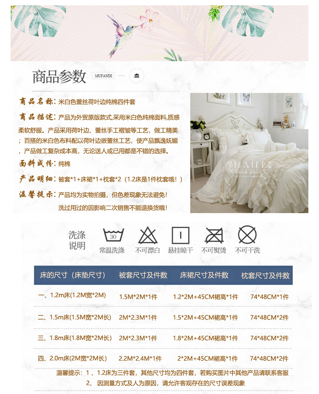 | Ширина кровати: | 1,5*2 -метровая кровать (с 2*2,3 млн., 1,8*2 -метровая кровать (с 2,2*2,4 млн., 2m*2m кровать (с стеганым одеялом 2,2*2,4 м) |