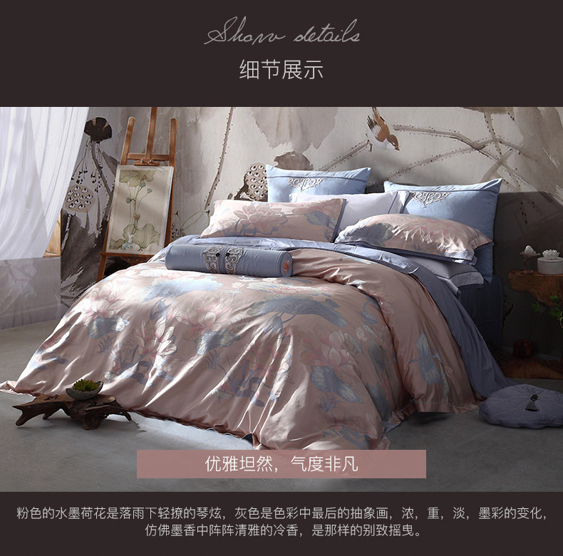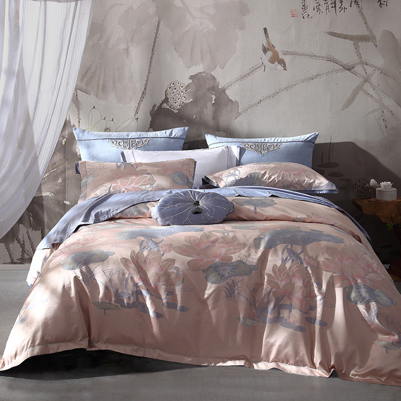Шелковистый комплект, хлопковый пододеяльник, простыня, покрывало, китайский стиль, 4 предмета, 248x