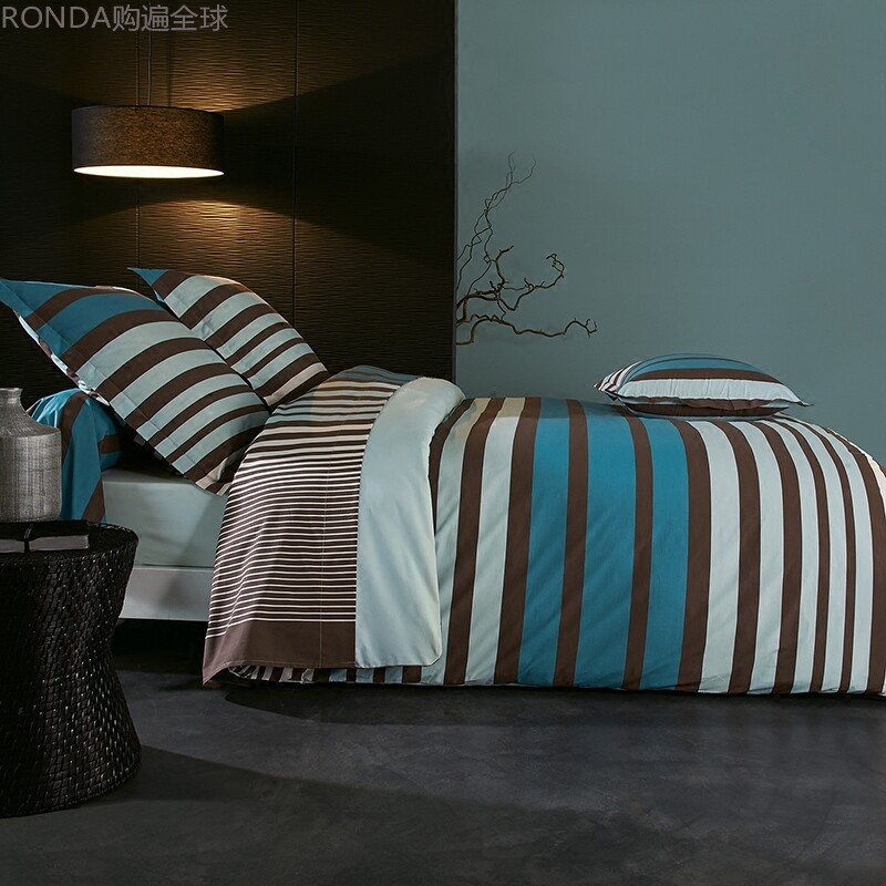 Французский традиционный европейский стиль, густой тканый хлопок чистый хлопковой постельное белье с четырьмя частями набор 1,8 м кровати синие полосы