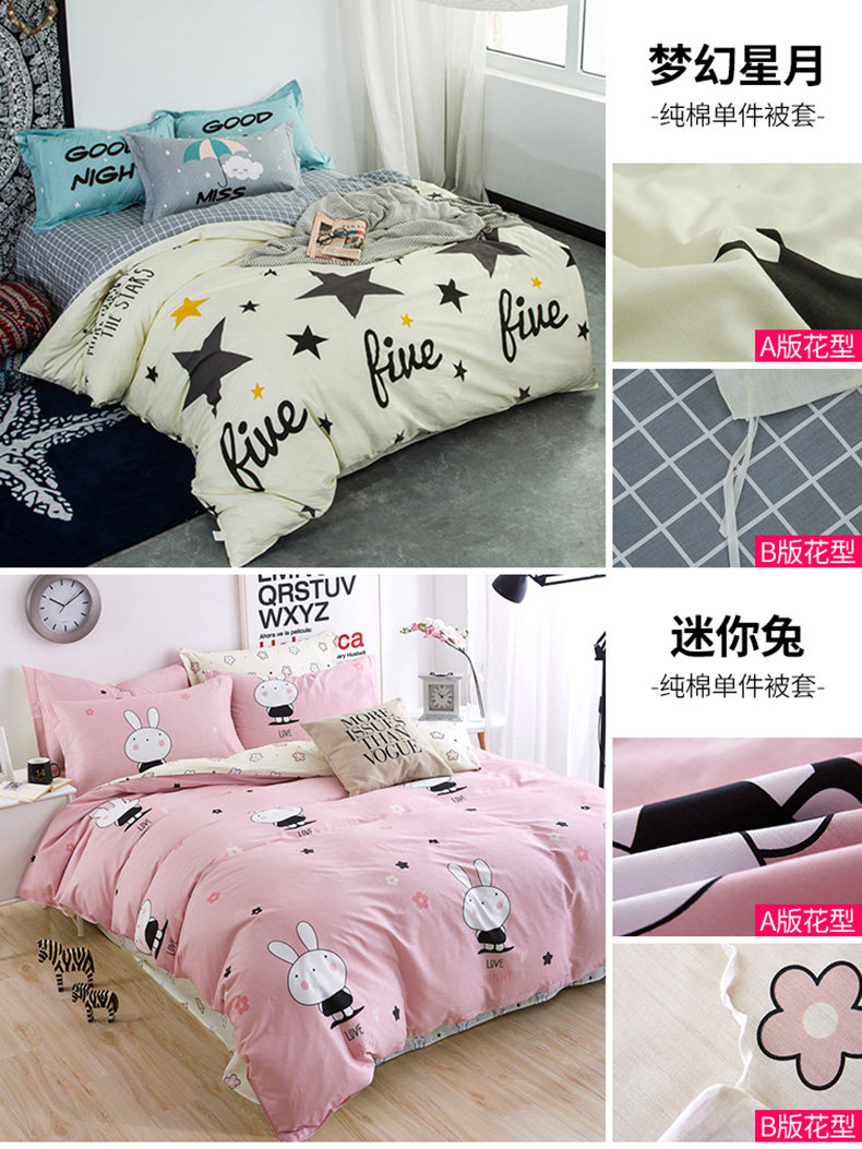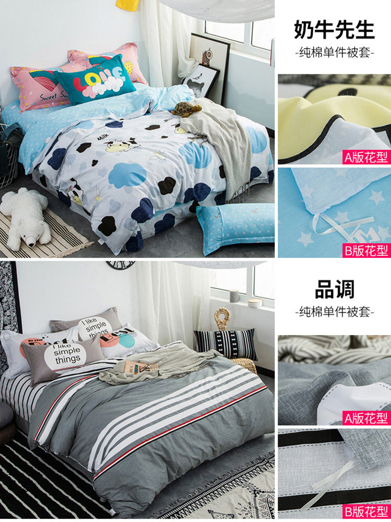 Хлопковый комплект, покрывало для школьников и студентов, пододеяльник, простыня, 4 предмета, постельные принадлежности, 1.5м, 1.8м